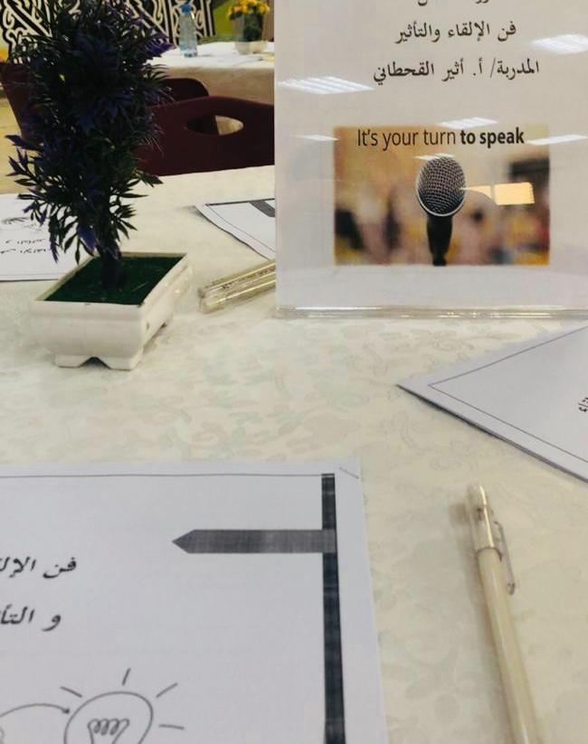 وتهدف الدورة إلى تطوير مهارات المتدربات على كيفية التحدث بطريقة فعالة ومؤثرة امام الاخرين ومهارات التأثير اثناء الحديث . وقد تناولت الورشة عدد من المحاور منها استراتيجيات مواجهة الجمهور وادارة الحوار والتأثير على الآخرين ، ومهارات بناء الثقة بالنفس ، وأساليب الإلقاء الإرتجالي .