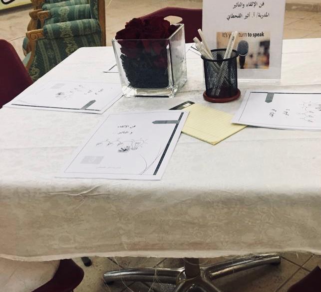 وأضافت القحطاني بعض الطرق العملية لمواجهة الجمهور من حيث الوقفة الصحيحة وطريقة الكلام .