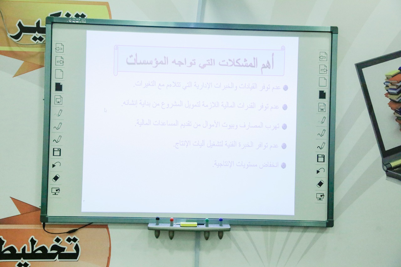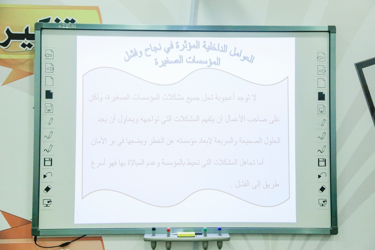 تناولت الدورة التدريبية التي حضرها " 51 طالباً و طالبة " أهم المشكلات الداخلية و الخارجية التي تعاني منها المشروعات الريادية , حيث تم التركيز على أسباب هذه المشكلات المتمثلة في العوامل الداخلية ( النواحي الإدارية , العقبات المالية , العمالة غير الماهرة , و الموظفين ) و العوامل الخارجية ( العوامل الاقتصادية , العوامل الاجتماعية , العوامل السكانية , والعوامل الدينية ) كما استعرض المدرب بعض النقاط التي يمكن من خلالها تجنب فشل المشروعات الريادية , و المؤشرات الأساسية لنجاح المشروعات الريادية .ِ