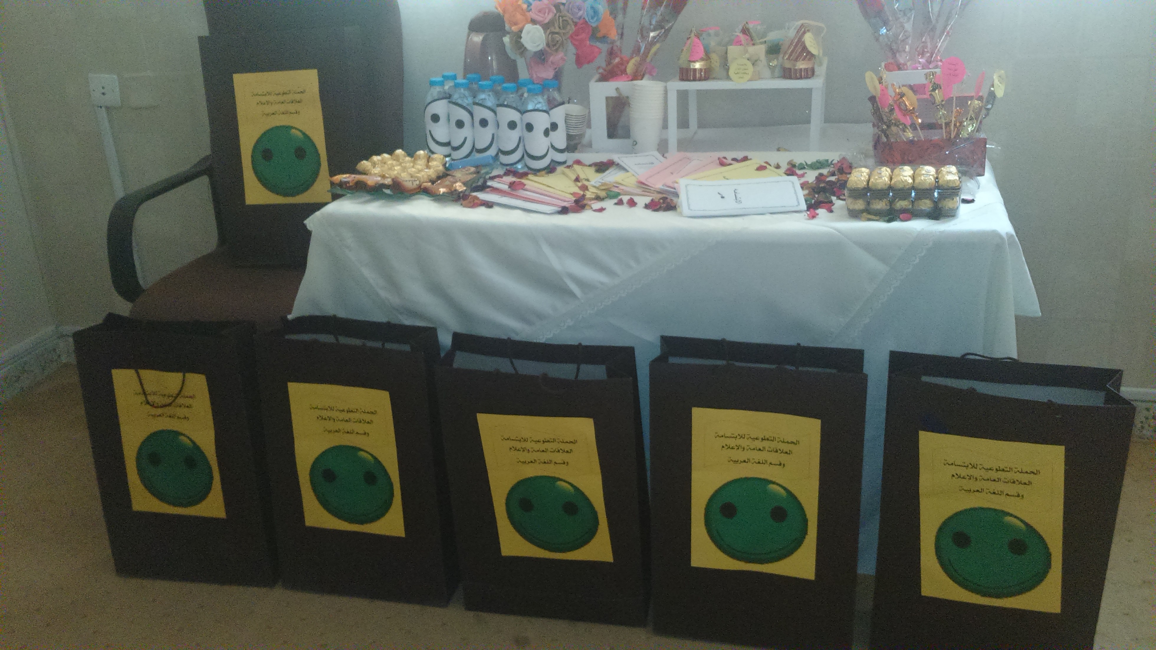 نظمت وحدة العلاقات العامة والإعلام بالتعاون مع قسم الغة العربية حملة تطوعية لنشر الابتسامة بأشراف مشرفة العلاقات العامة والإعلام أ.سارة عبدالله الدوسري و أ.نورة مكاوني مساعدة مشرفة العلاقات العامة والإعلام وطالبات قسم اللغة العربية اشتملت الحملة على زيارة للمدرسة الابتدائية الحادي والعشرين بإسكان المصانع بالخرج يوم الاربعاء الموافق1436/6/19هـ واستهدفت الأطفال ذوي الاحتياجات الخاصة وخاصاً ( أطفال التوحد) وعمل لهم برنامج ترفيهي الهدف منه ادخال البهجة والسرور عليهن وتعريف طالبات الكلية بهذه الفئة وطرق التعامل معهم .