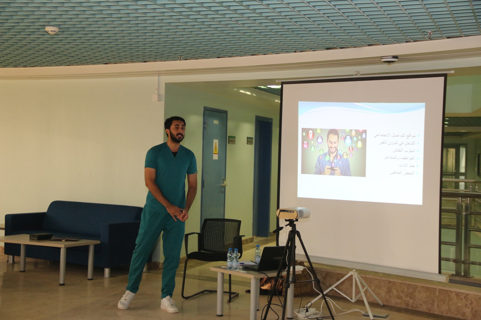 كما قدم مدير نادي جرعة الطالب علي القيشان ساعة مساريه بعنوان "النمط الصحي" تحدث خلالها عن الأمور اليومية التي لابد على الإنسان مزاولتها لينعم بحياة صحية جيدة والتي من أهمها ممارسة التمارين رياضية ووضع خطة بذلك وكذلك العادات السيئة التي يجب تجنبها سواء من ناحية المأكولات والمشروبات أو في طريقة تخفيف الوزن وغيرها.