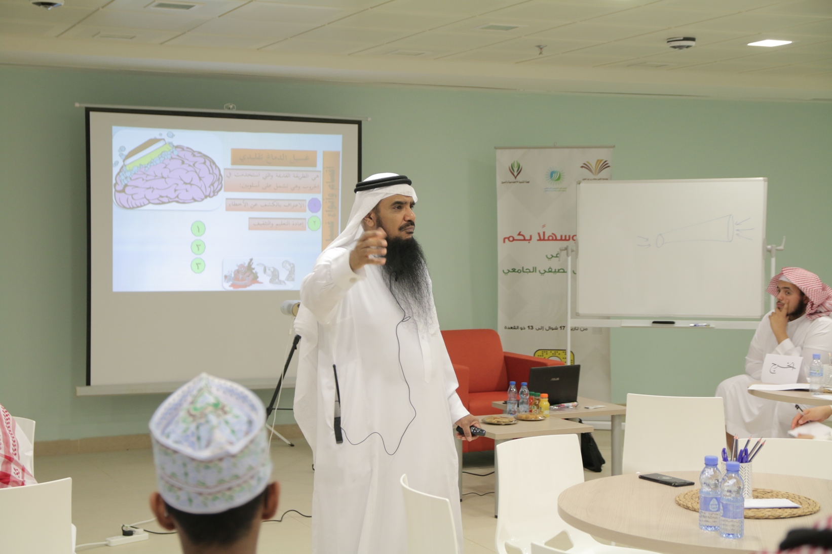 قدم رئيس وحدة التوعية الفكرية بجامعة الأمير سطام بن عبدالعزيز أ. خالد الدبيان دورة بعنوان "غسيل الدماغ" بالملتقى الصيفي الذي تنظمه عمادة شؤون الطلاب بالتعاون مع لجنة التنمية الاجتماعية بالسيح , كانت الدورة على مدى يومي الاثنين والثلاثاء 18 – 19 / 10 / 1439هـ , تحدث الدبيان خلالها عن المراحل التي تمر بها عملية غسيل الدماغ والفئات المستهدفة وكيفية الوقاية و التحصن منها وتجنب التأثر بها ، كما أطلع المتدربين على أنواع طرق غسيل الدماغ والتي منها التقليدي والإلكتروني والذي يعتبر هو الأخطر في وقتنا الحاضر ذلك لاهتمام الشباب منهم من الفئة العمرية سريعي التأثر بهذا المجال والذي جعل الأعداء يتخذونه منصة لبث سمومهم وأفكارهم ,وفي ختام الدورة وجه الدبيان بعض الأسئلة للطلاب وكذلك أستمع لاستفساراتهم ومداخلاتهم وتعليقاتهم على موضوع الدورة.