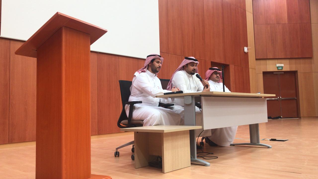 كما تحدث سعادة وكيل الكلية للشؤون التعليمية والأكاديمية الدكتور / عواد العنزي عن مدخلات العملية التعليمية وأن الطالب الجامعي هو أحد مدخلاتها الرئيسة، و ركز على أهمية الاستفادة من الحياة الجامعية في بناء علاقة اجتماعية وتأطيرها مع التركيز على أهمية اكتساب المهارات والخبرات التعليمية. كما تحدث أيضاً سعادة وكيل التطوير والجودة الدكتور / فيصل الخليفي حول جوانب الجودة في العملية التعليمية وأهمية تفعيل دورها مع التأكيد على مشاركة الطلاب في مختلف أنشطة الجودة بما يحسن مخرجات التعلم ويدعم الطلاب في حل المشاكل المرتبطة بالمقررات الدراسية. ثم تناول اللقاء حوار مفتوحاً تناول فيه الطلاب عدداً من الأسئلة والاستفسارات حول الكلية وبرامجها التعليمية ونظام الجامعة. وأختتم اللقاء بكلمة للدكتور / طارق توفيق الخطيب رئيس لجنة الأنشطة الطلابية الذي تناول فيها مختلف الأنشطة والبرامج التي تقدمها الكلية داعياً الطلاب إلى المشاركة والاستفادة من البرامج والأنشطة اللاصفية التي تسهم في بناء الشخصية المتوازنة والبناءة للطالب الجامعي .