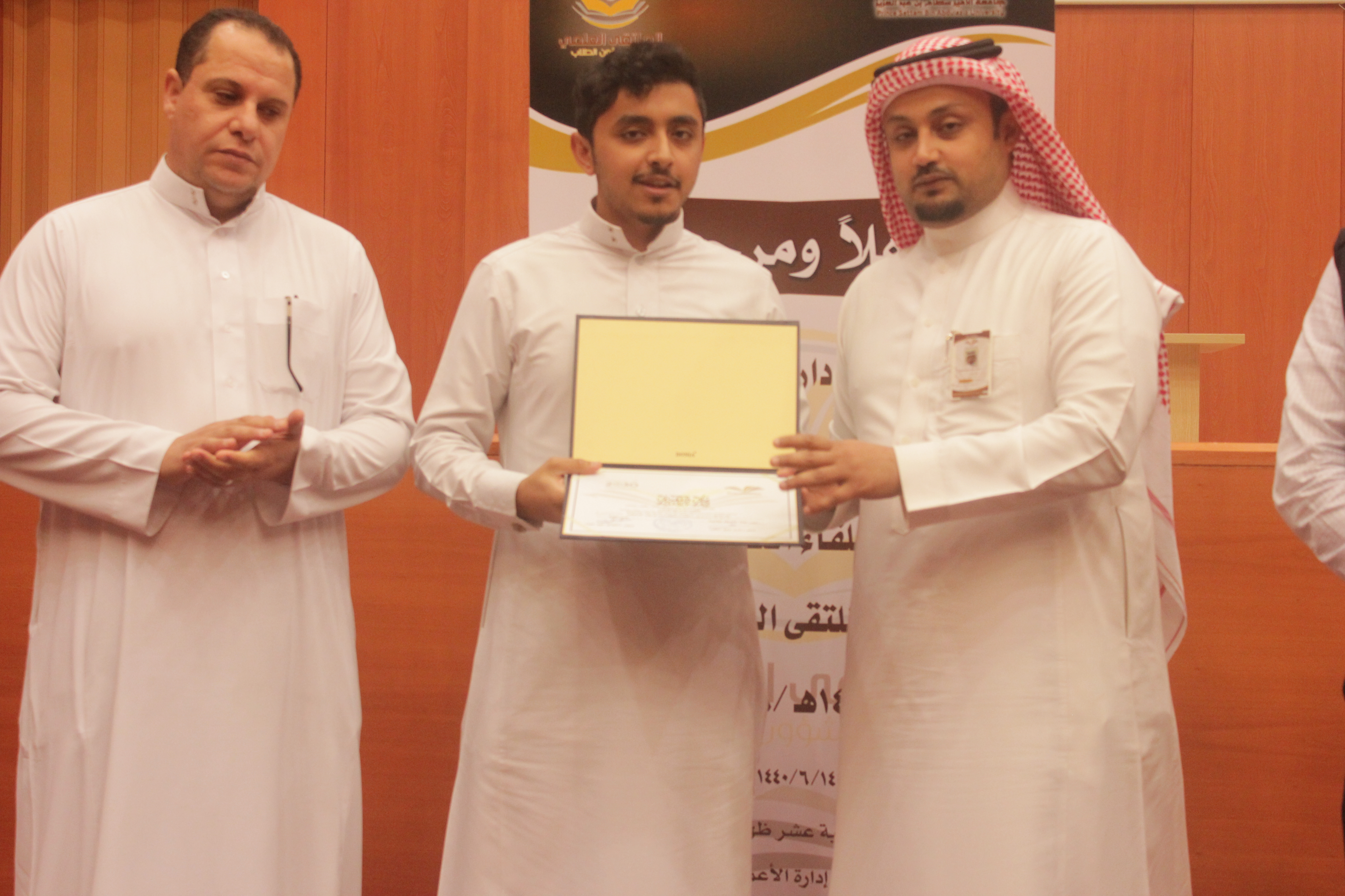 وقد بدأ الحفل بتلاوة آيات من الذكر الحكيم، تلاه عرض فيلم تسجيلي يوثق فعاليات الكلية للإستعداد للملتقى والتي تجاوزت الواحد وثلاثين فعالية تنوعت ما بين ورشة عمل ومحاضرة تخصصية ولقاءات نوعية واجتماعات تنسيقية. ثم ألقى سعادة عميد شؤون الطلاب كلمته التي شكر فيها الكلية على التميز في الأنشطة والتنوع في البرامج المقدمة، ثم ألقى سعادة عميد الكلية كلمته التي شكر فيها عمادة شؤون الطلاب على الدعم والرعاية ووجه شكره أيضاً للطلاب على هذا الحراك النوعي كما وجه شكره أيضاً للجنة الأنشطة الطلابية بالكلية على الجهود التي تقدمها، ومن ثم قام الطلاب بتقديم عينة من أعمالهم المميزة في مختلف محاور الملتقى, وأختتم البرنامج بزيارة المعرض المصاحب حيث قدم الطلاب شرحاً مختصراً لإنتاجهم العلمي في الملتقى.