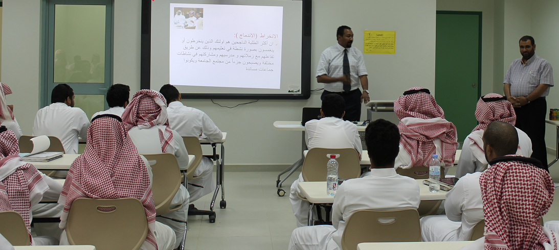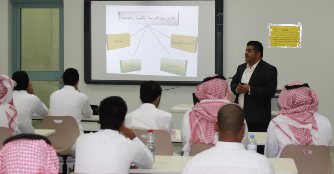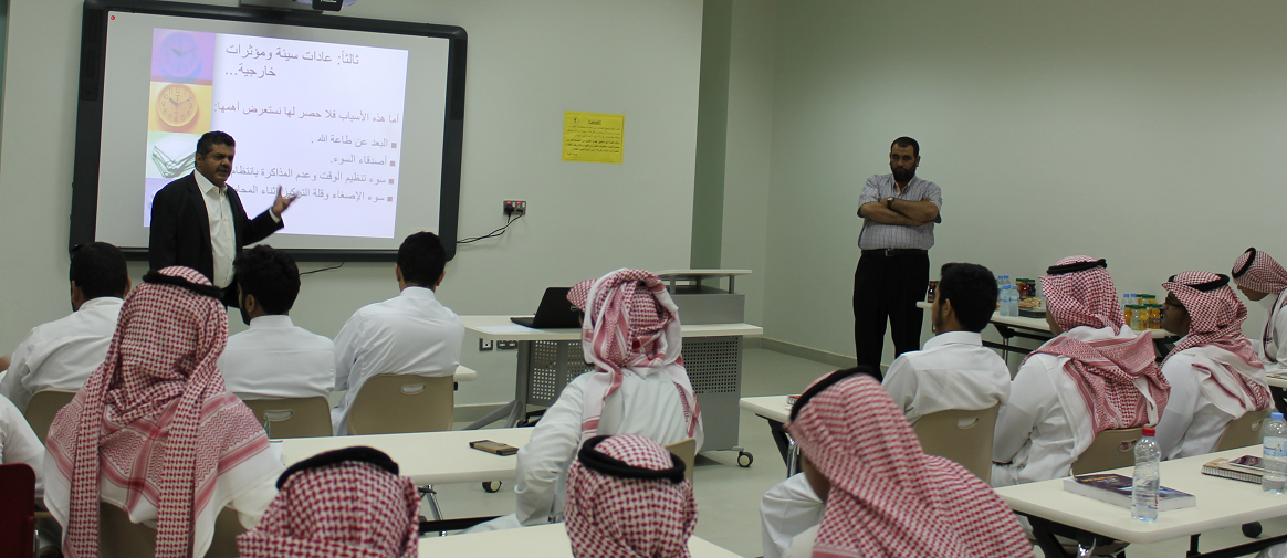برعاية الدكتور / ناصر بن سعد القحطاني ، عميد إدارة الأعمال و الدكتور / علي الزهراني ، وكيل الكلية للشؤون التعليمية والاكاديمية و مدير الادارة محمد عبد المطلوب حمدان ، نظمت لجنة الأنشطة الطلابية محاضرة تثقيفية بعنوان: "حياة الطالب الجامعية بين الواقع والمأمول" ، قدمها كلاً من الدكتور نبيل أحمد سنان و الدكتور فخر الدين محمد موسى عثمان ، حيث تناولت المحاضرة بيان أهم الفروق والاختلافات بين الحياة الجامعية والمراحل التي تسبقها وسبل التهيئة النفسية الواجب على الطالب اتباعها للانتقال من المدرسة إلى الجامعة ، كذلك المرور على كافة العقبات والصعوبات النفسية والأكاديمية والاجتماعية التي قد تواجه الطالب الجامعي وسبل التعامل معها . مع بيان آليات التخطيط الجيد للنجاح والاستفادة من الفترة الجامعية ، واختتمت المحاضرة بنصائح وتوصيات لضمان نجاح الطالب في حياته الجامعية .