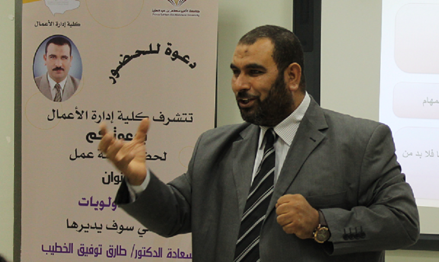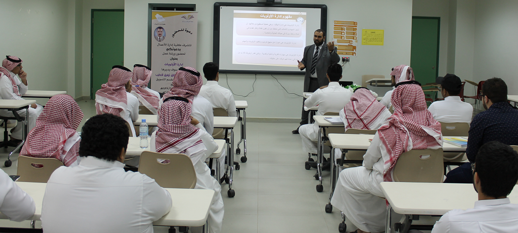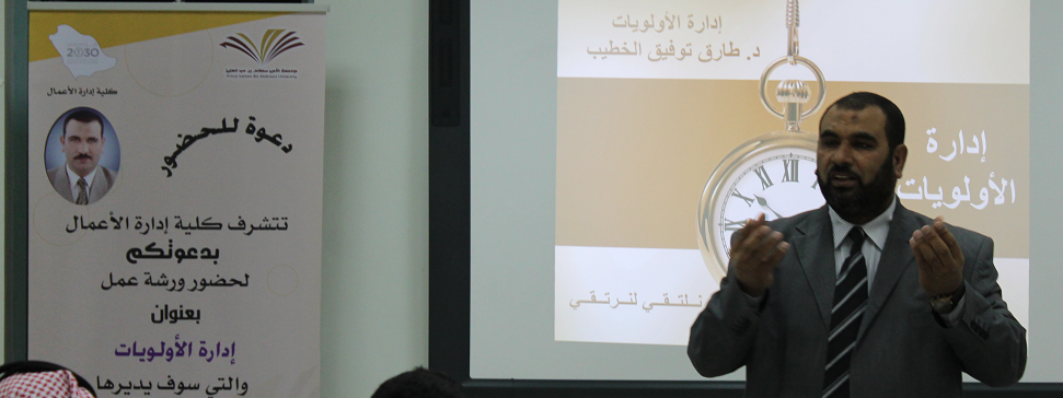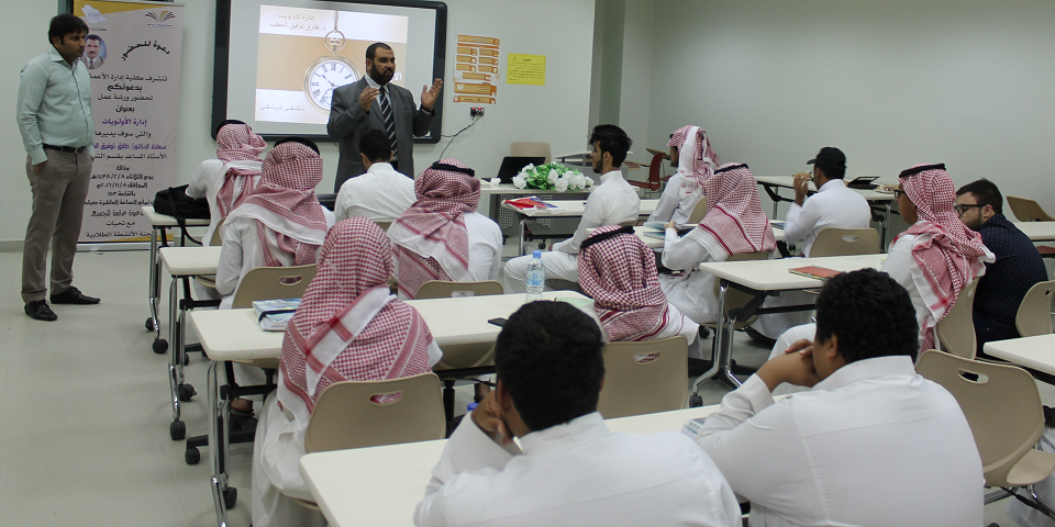 إيمانا بأهمية الوقت وإدارته وتأكيدا على أن سبيل النجاح والتفوق ممهد بحسن إدارة الوقت والأولويات ، نظمت لجنة الأنشطة الطلابية محاضرة تفاعلية حول إدارة الأولويات ، قدمها سعادة الدكتور / طارق توفيق الخطيب ، الاستاذ المشارك بقسم التسويق ، وتناولت المحاضرة شرح وافي وتطبيقات عملية وتدريبية للحضور حول مفهوم إدارة الأولويات وتعريفه وبيان أهميته ، مروراُ بمنظومة الموارد ودورها في إدارة الأولويات بجانب التعرف على العادات العشر للشخصية الناجحة مع استعراض أهم البحوث والنظريات في هذا الإطار وتناول قاعدة بريتو بنوع من التفصيل .