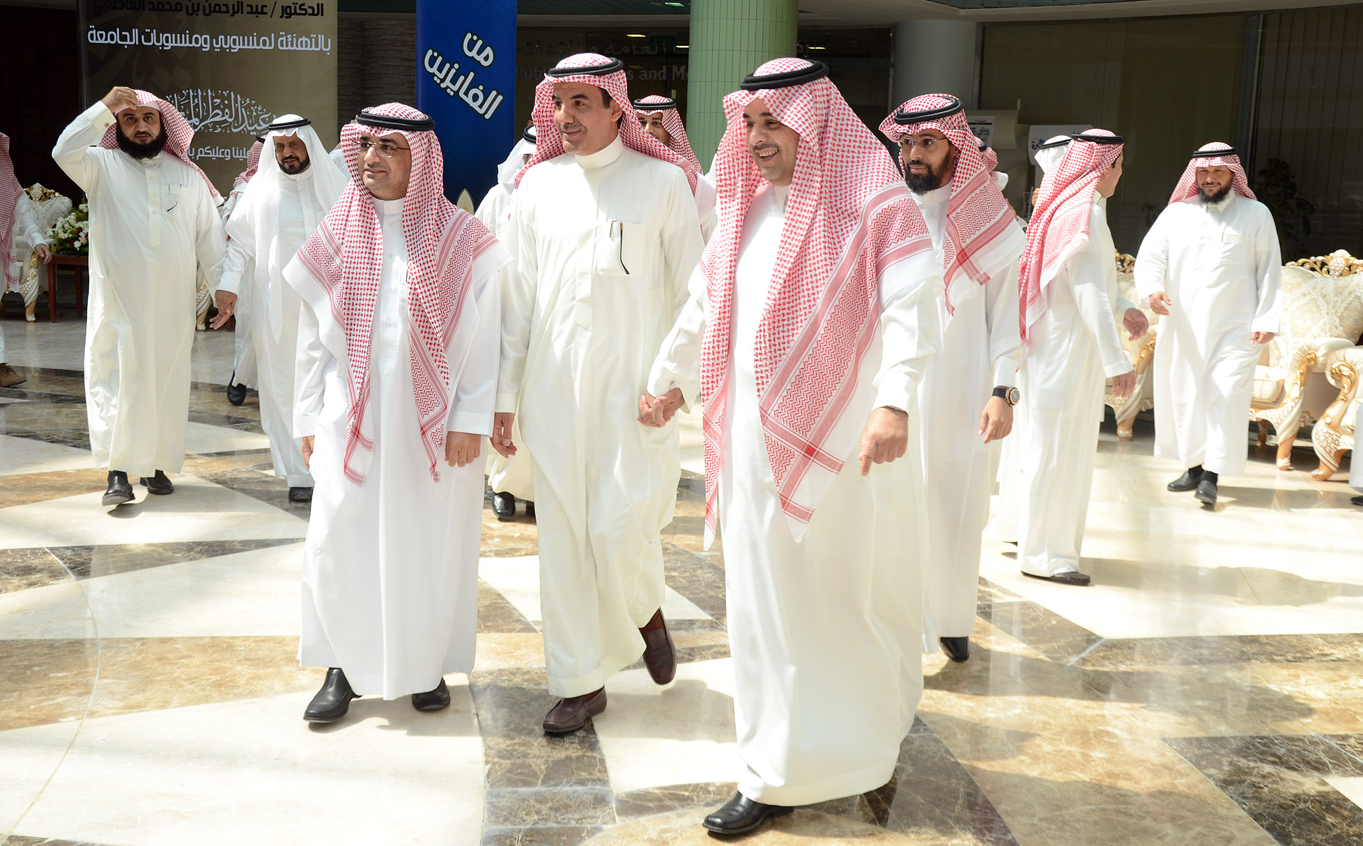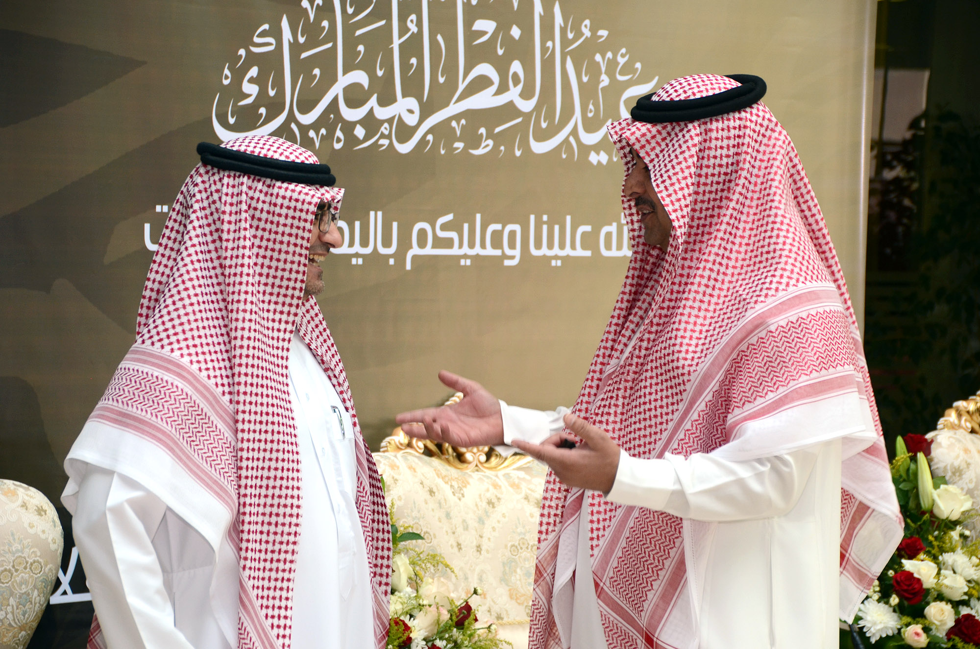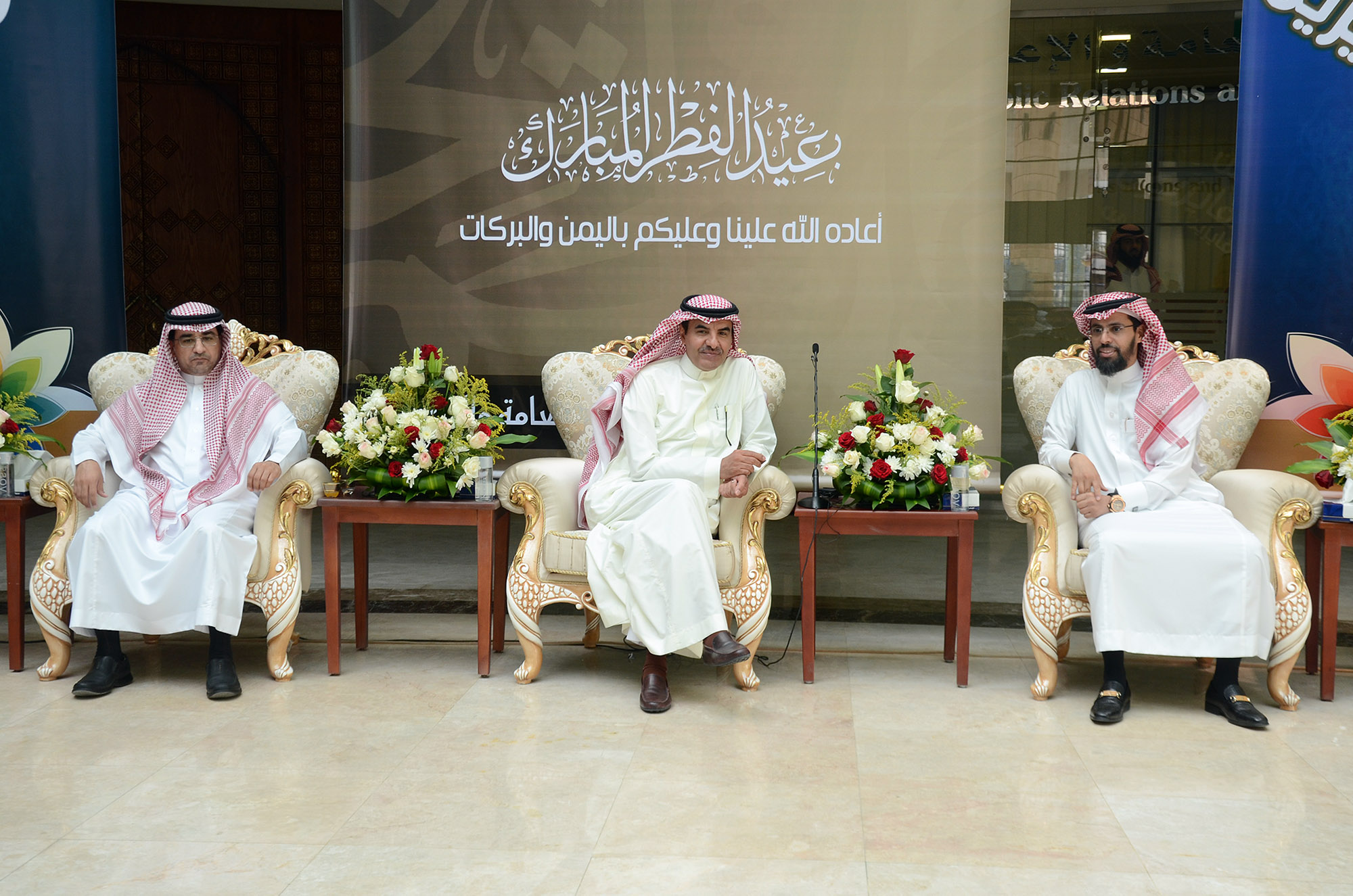 نظمت إدارة العلاقات العامة والإعلام بالجامعة احتفالاً بعيد الفطر المبارك بالمدينة الجامعية بالسيح صباح اليوم الأربعاء السادس من شهر شوال, وذلك بحضور معالي مدير الجامعة الدكتور عبد الرحمن العاصمي ووكلاء الجامعة وعمداء الكليات والعمادات المساندة وأعضاء هيئة التدريس وموظفي الجامعة وقدم الدكتور العاصمي التهاني لكافة منسوبي الجامعة بهذه المناسبة السعيدة وذكر أن الجامعة تحرص على إقامة هذا الحفل كل عام لتعزيز العلاقات الاجتماعية بين موظفيها وحتى يتسنى كذلك لكافة الموظفين تبادل التهاني بهذه المناسبة المباركة