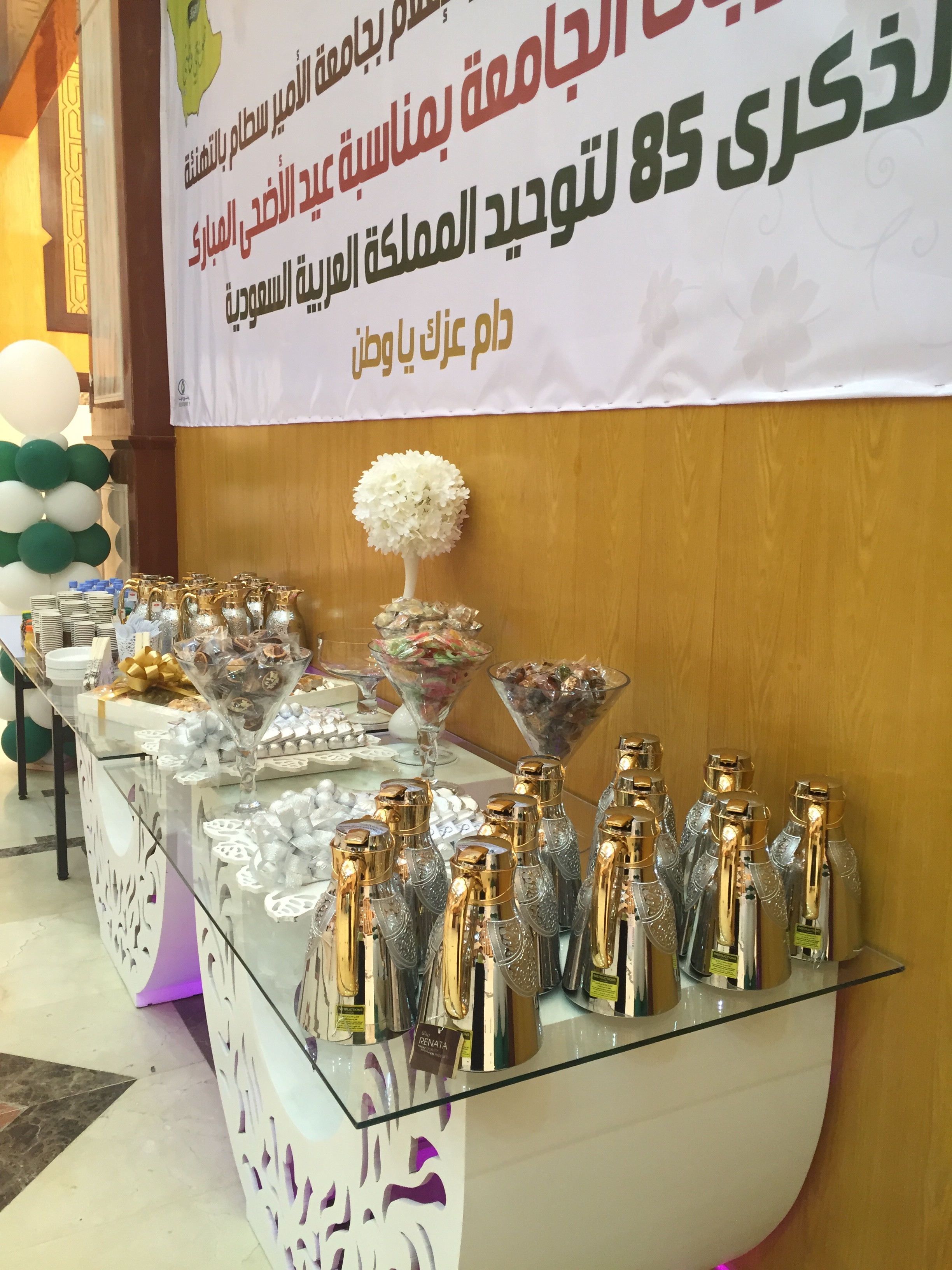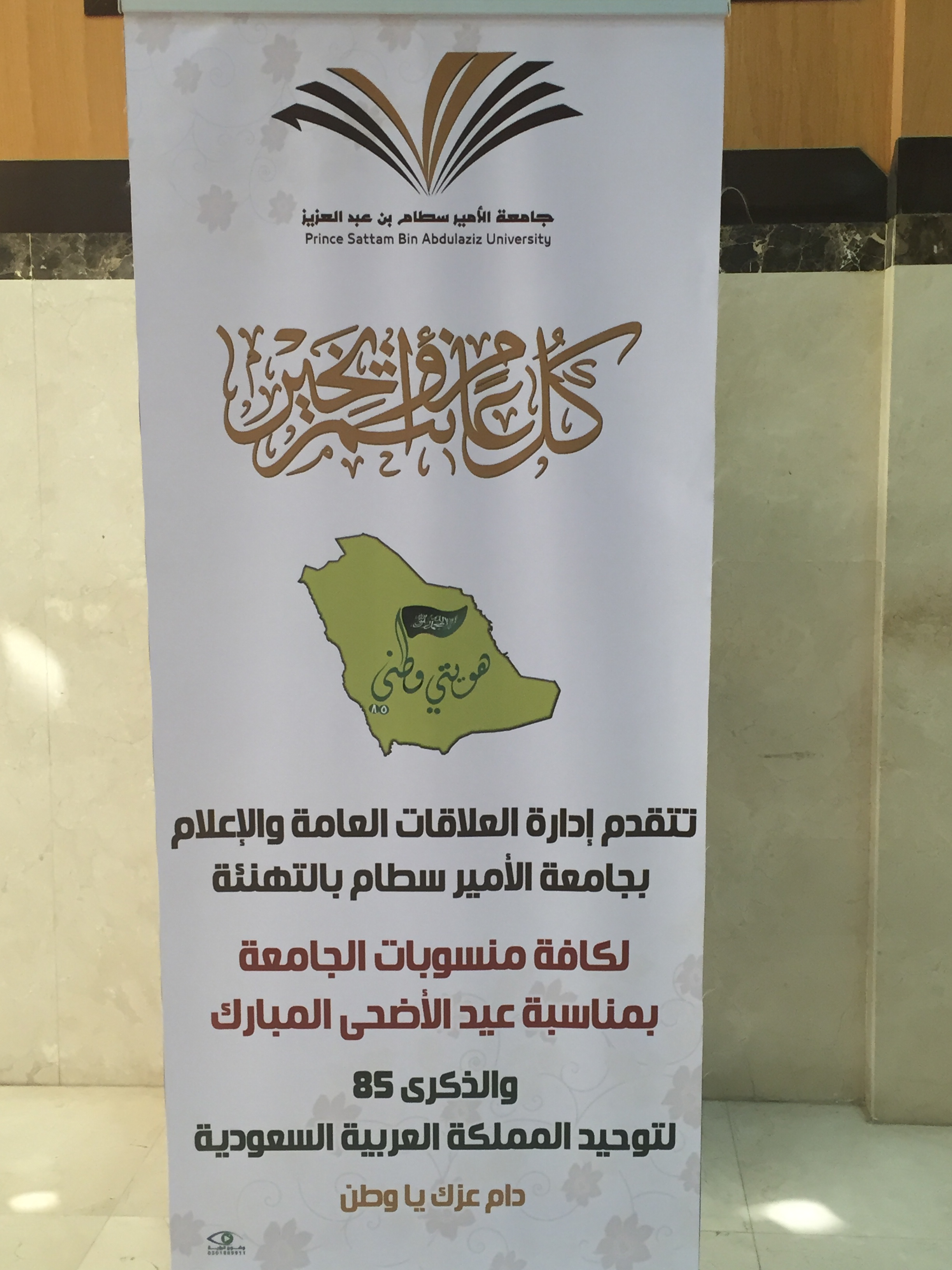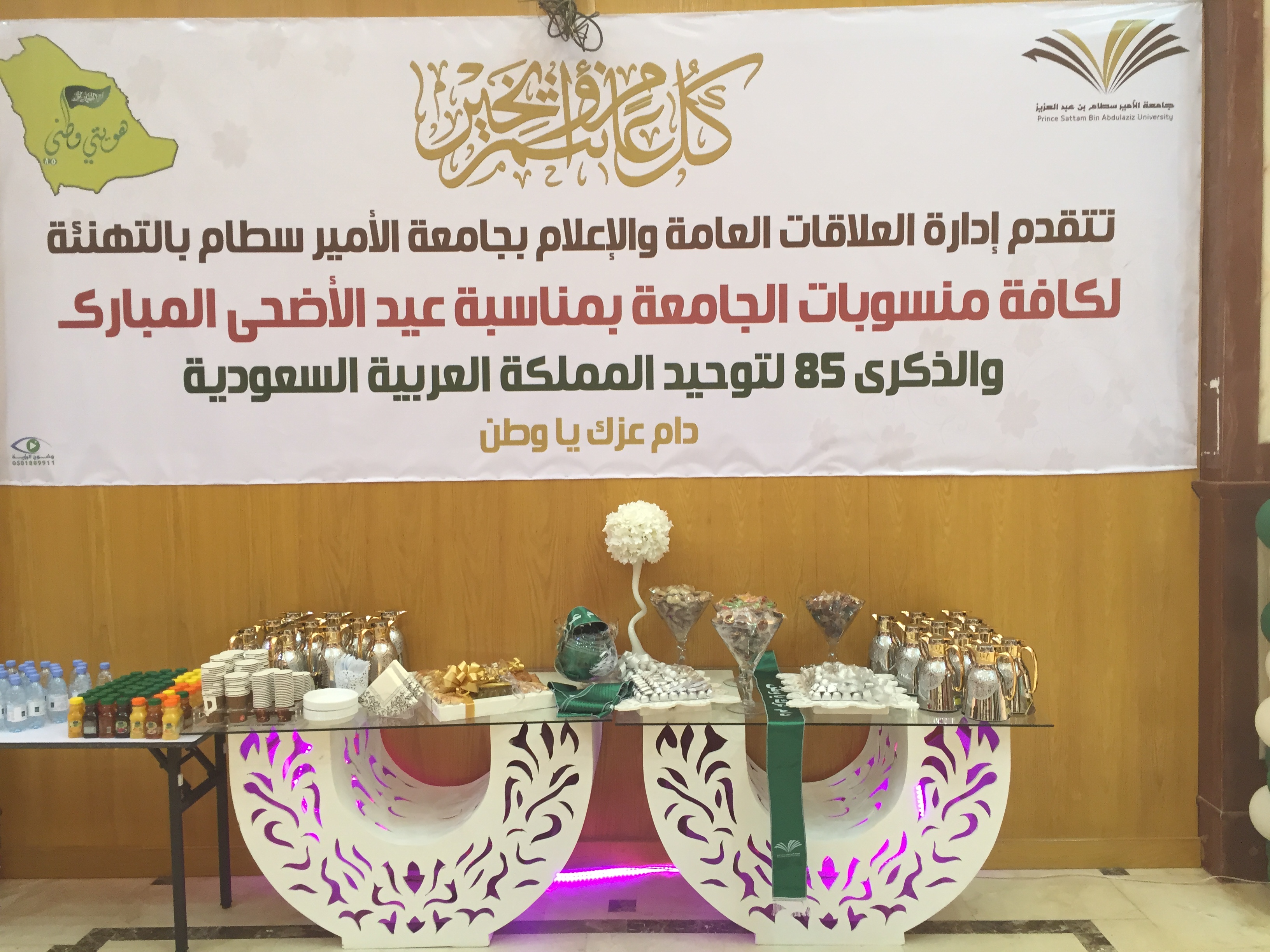 line-height:27.0pt;background:white;direction:rtl;unicode-bidi:embed">نظمت إدارة العلاقات العامة والإعلام بجامعة الأمير سطّام بن عبد العزيز حفل معايدة وتهنئة لمنسوبات الجامعة بمناسبة اليوم الوطني للمملكة العربية السعودية وعيد الأضحى المبارك ، وذلك يوم الخميس الموافق 1436/12/25 هـ بالبهو الرئيسي لمبنى الهداية . color:#333333">