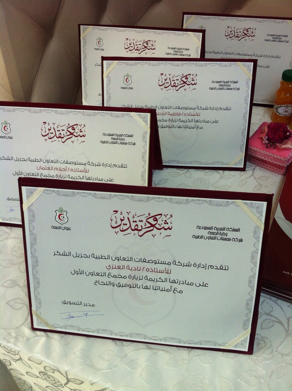 في بادرة تسعى من خلالها إدارة العلاقات العامة والإعلام (القسم النسائي) لمد جسور التواصل مع المجتمع قامت منسوبات القسم بزيارة لمجمعات التعاون الطبية يوم الاثنين الموافق 1436/5/11هـ ، وقد اشتملت الزيارة على جولة لأقسام المجمع والخدمات الطبية المتنوعة التي يقدمها ،ومنها قسم الأشعة وقسم العلاج الطبيعي ، وقسم العيادات ، وقسم مركز لارين للتجميل والعناية بالمرأة ، ثم استمع الوفد إلى شرح حول أهم المشاكل التي قد تواجه المرأة وخاصة ما يتعلق بالبشرة والأمراض التي قد تتعرض لها ، وسُبل حمايتها والعناية بها ، وفي ختام الجولة ألتقى الوفد بمسؤولة التنسيق في المجمعات الأستاذة/ فوزية الرشيدي والأستاذة / إيمان الخضير اللتان عرضتا شرح شامل للخدمات المقدمة وفي الختام وزعت شهادات شُكر لمنسوبات الإدارة لزيارتهن وقد اشتمل الوفد على : مساعدة المشرف على العلاقات العامة والإعلام الأستاذة / نورة بنت عيسى الحماد ، والأستاذة / نادية بنت مانع العنزي، والأستاذة /فاطمة بنت سعود الحنتوش، والأستاذة /عفرية جرود الحربي، الأستاذة / أحلام إبراهيم العثمان.