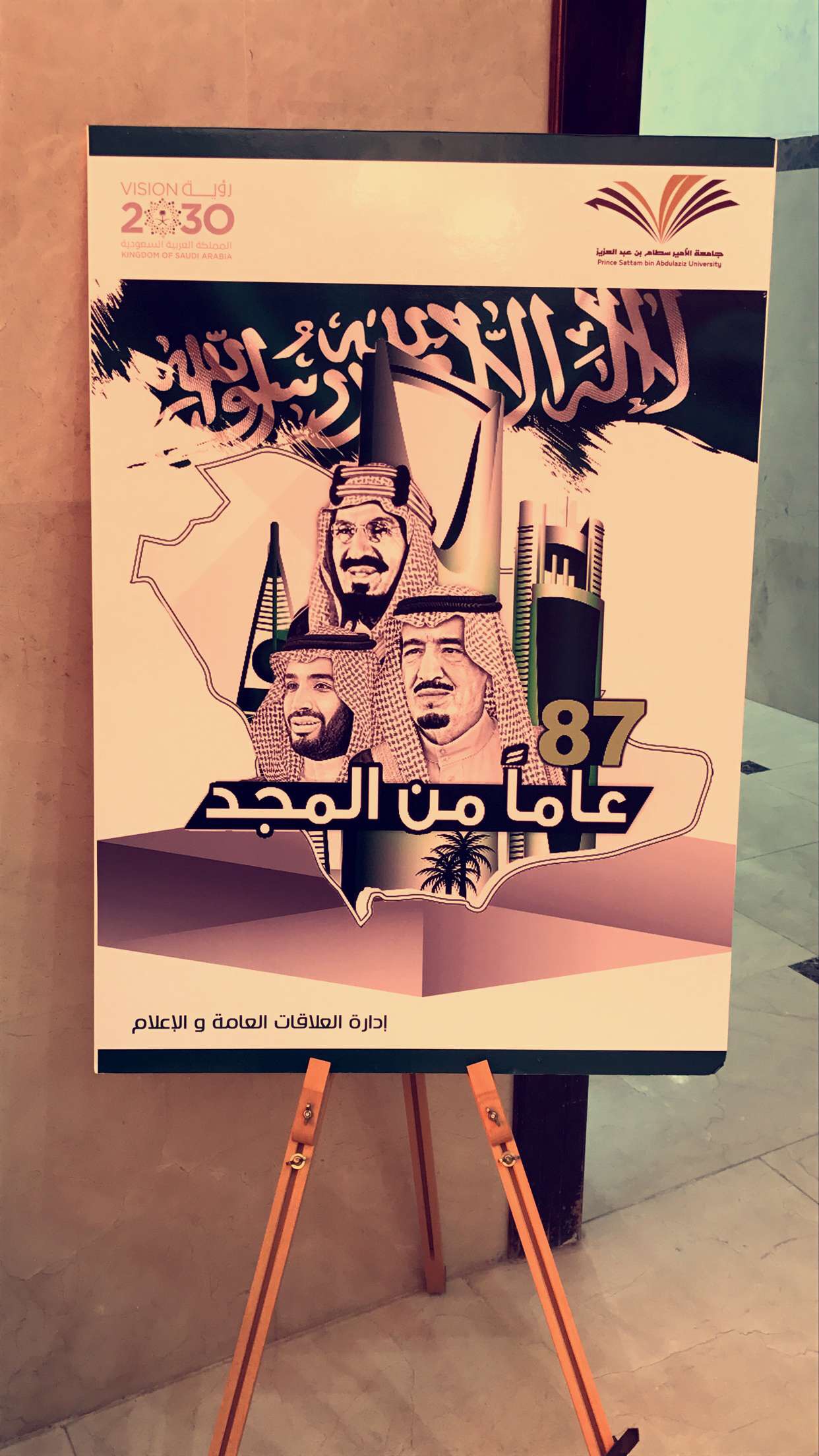 أقامت إدارة العلاقات العامة والإعلام حفلاً بمناسبة اليوم الوطني ٨٧ للملكة العربية السعودية وذلك يوم الإثنين الموافق 5/1/1439هـ بمبنى العمادات المساندة. ويأتي هذا الاحتفال تعبيرًا عن مدى سعادة منسوبات الجامعة بهذه المناسبة التي تمر على وطننا الغالي وفيها يتجدد الولاء له والعزم على النهوض به والانطلاق إلى آفاق المستقبل بما يتلاءم مع طموح حكام البلاد وفي ظل مسيرة يقودها خادم الحرمين الشرفين الملك سلمان بن عبدالعزيز وولي عهده الأمير محمد بن سلمان بن عبدالعزيز وقد عبرت منسوبات الجامعة عن شعورهن بالفخر والاعتزاز بهذا الوطن فمن نجاح في تنظيم الحج إلى حماية حدود إلى مكانة، متميزة في مصاف الدول المتقدمة ، كما عبرن عن شكرهن لقيادة الجامعة ممثلة في معالي مدير الجامعة ا. د. عبدالعزيز الحامد ووكلائها وعمدائها وجميع منسوبي الجامعة على الجهود المبذولة في العام المنصرم ويتطلعن لمزيد من التقدم والرقي. وقدحرصت إدارة العلاقات العامة والإعلام على تنوع الفعاليات الخاصة باليوم الوطني وقد حضيت بحرص واهتمام من سعادة المشرف العام على إدارة العلاقات العامة والإعلام د. عيسى بن خلف الدوسري الذي يؤكد على تفاعل الإدارة مع المناسبات الوطنية والعامة بما يتناسب مع الطابع العام للجامعة.