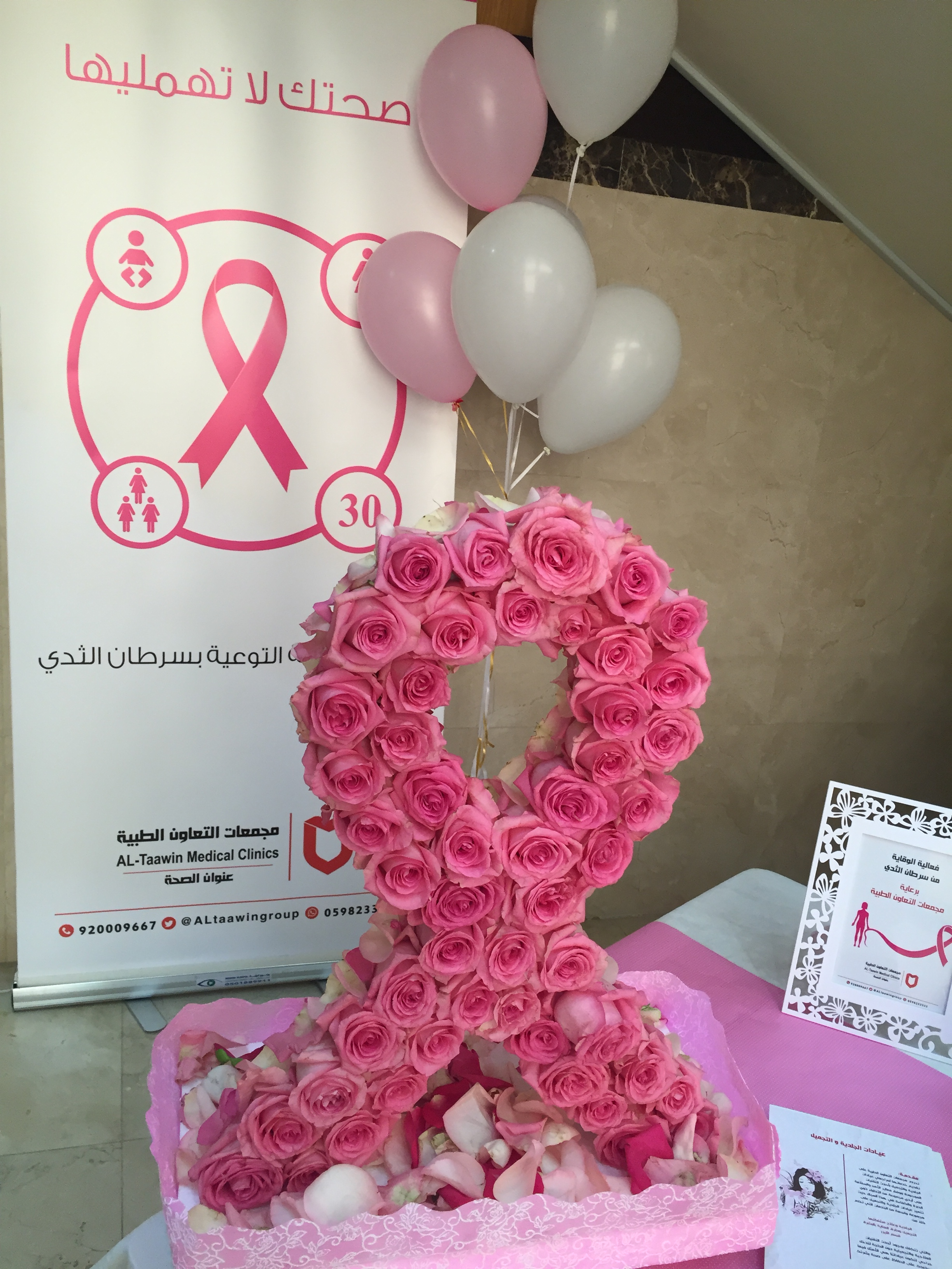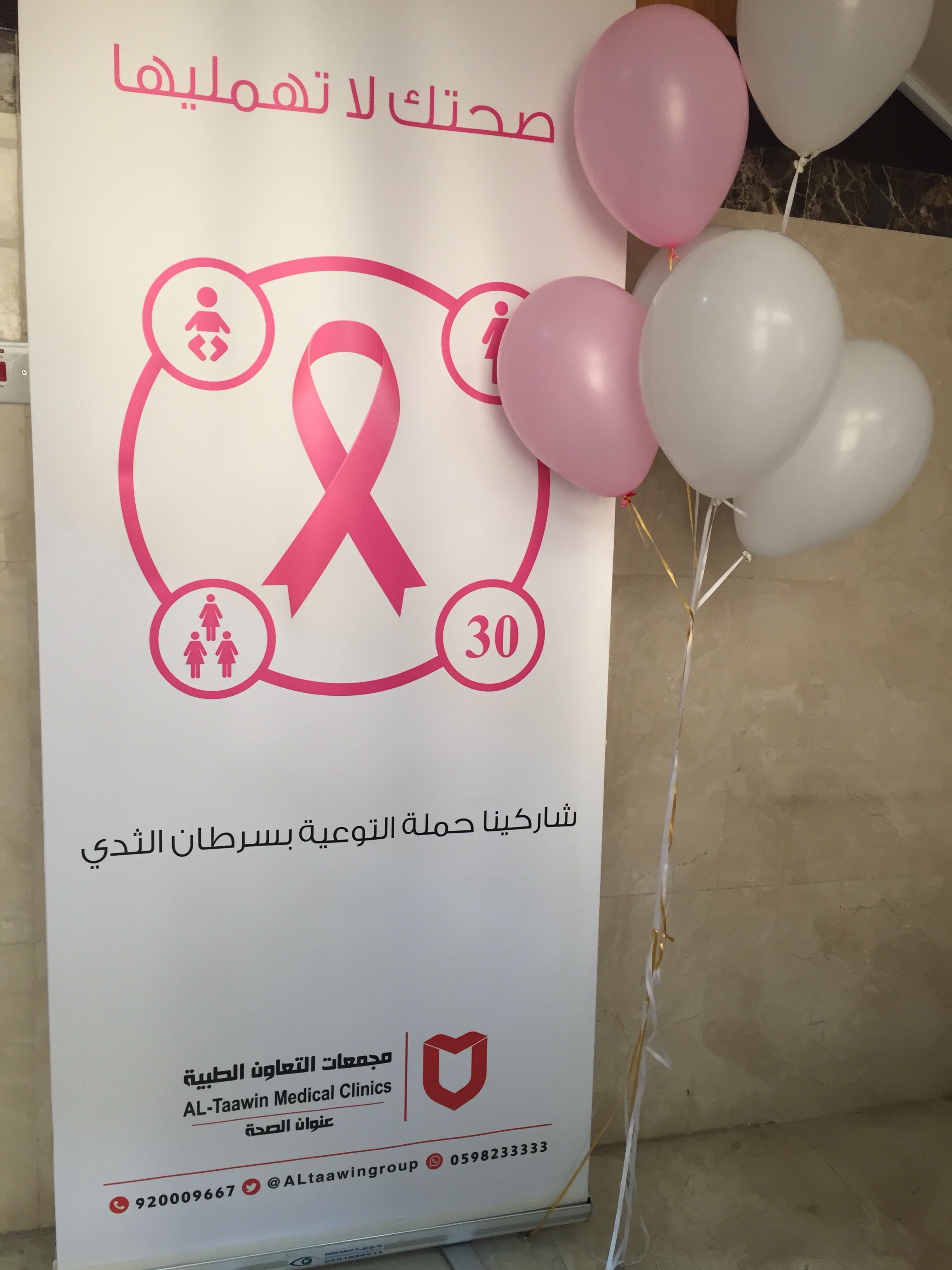 وفي يوم الاثنين الموافق 1437/1/13هـ أقامت وحدة العلاقات العامة والإعلام بكلية الصيدلة حملة توعوية عن سرطان الثدي، بحضور مساعدة عميد كلية الصيدلة أ.د. أماني عواد، ومنسوبات الكلية من الهيئة التعليمية والإدارية، بالإضافة إلى وفد من قسم إدارة العلاقات العامة بجامعة الأمير سطام، وبدأت الندوة بآيات من القرآن الكريم، ثم محاضرة تثقيفية عن سرطان الثدي ألقتها د. دينا علام أستاذ مشارك علم الأنسجة الخلوية بكلية الصيدلة، تناولت فيها تعريف المرض وأعراضه، وطرق الوقاية منه بالإضافة إلى توضيح أهمية الفحص المبكر، ثم ختمت المحاضرة بذكر بعض النصائح، والإرشادات المفيدة تجاه هذا المرض، بعد ذلك انتقل الحضور لمشاهدة المعرض المصاحب.