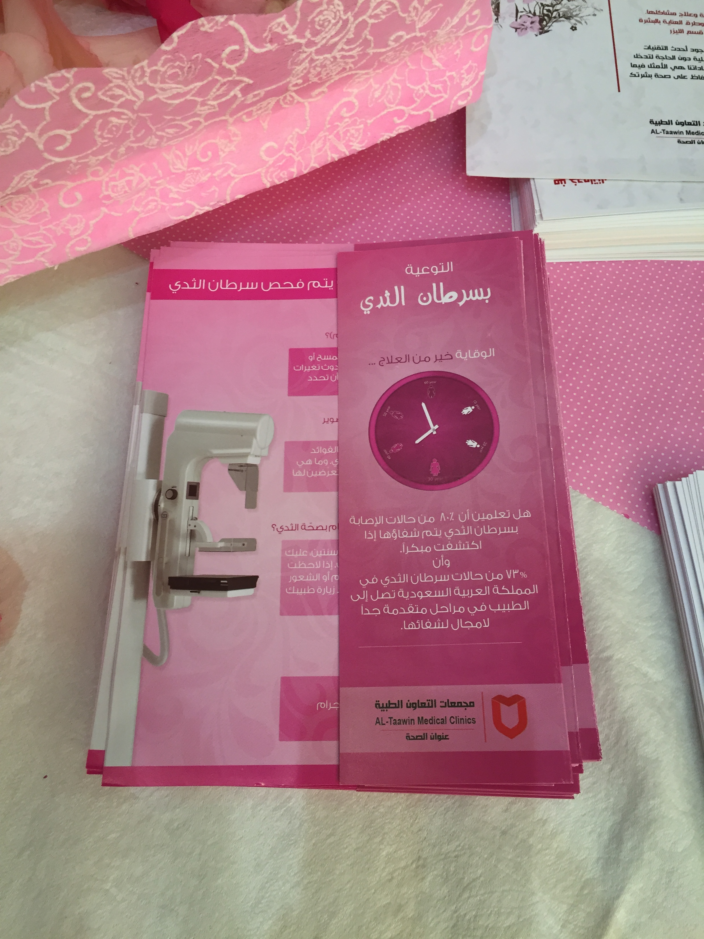 وفي يوم الثلاثاء الموافق 1437/1/14هـ كان الموعد مع كلية العلوم الطبية التطبيقية ممثلة في وحدة العلاقات العامة التي نظمت بدورها محاضرة عن سرطان الثدي؛ حيث ألقت رئيسة قسم الأشعة والتصوير الضوئي د. عفاف الأمين محاضرة عن سرطان الثدي وأعراضه وطرق العلاج، كذلك أكدت على ضرورة الكشف المبكر والفحص الدوري لكل امرأة، واختتمت الفعالية بزيارة الأركان التوعوية والتثقيفية وتوزيع النشرات والبطاقات التوعوية .