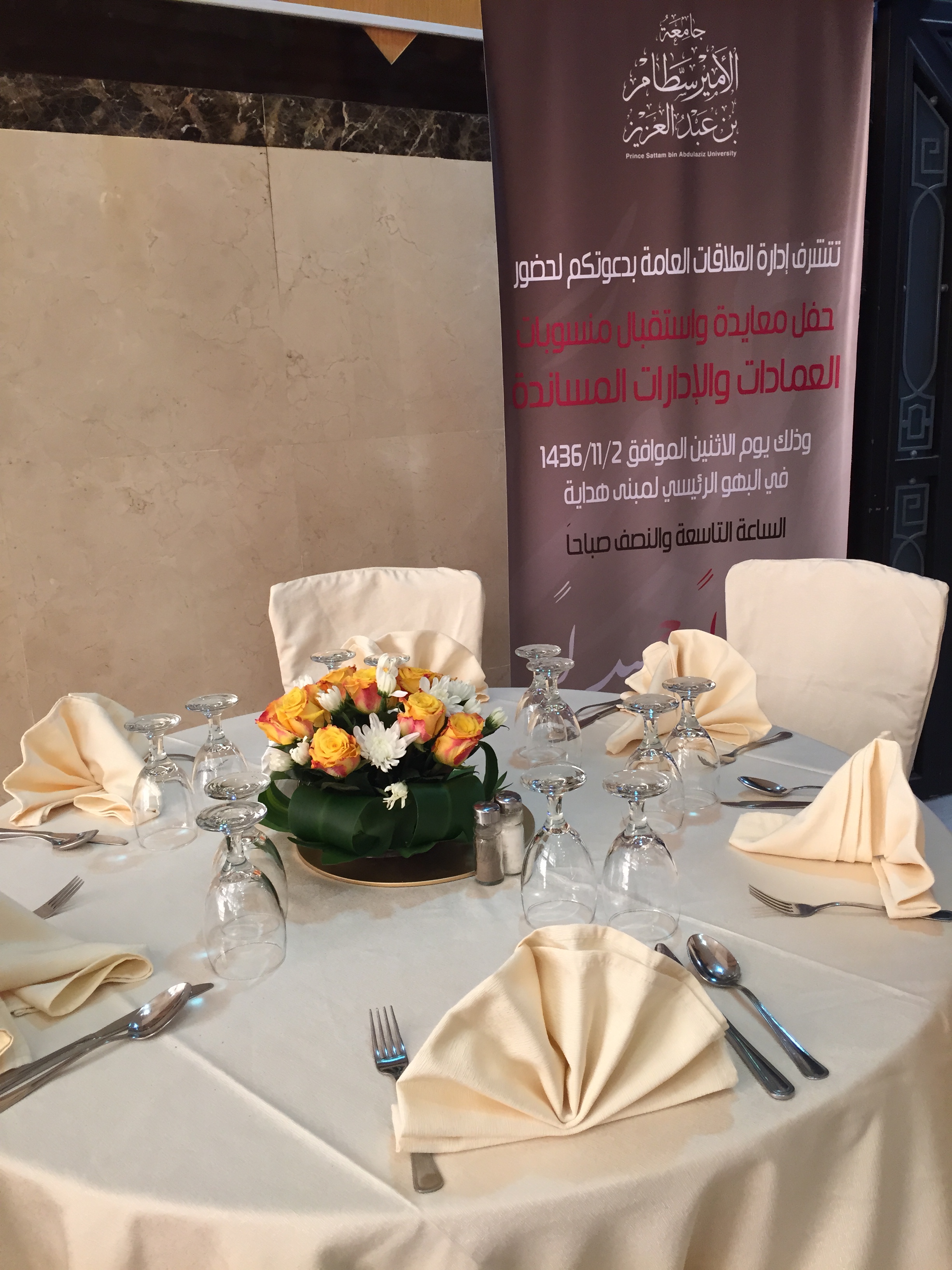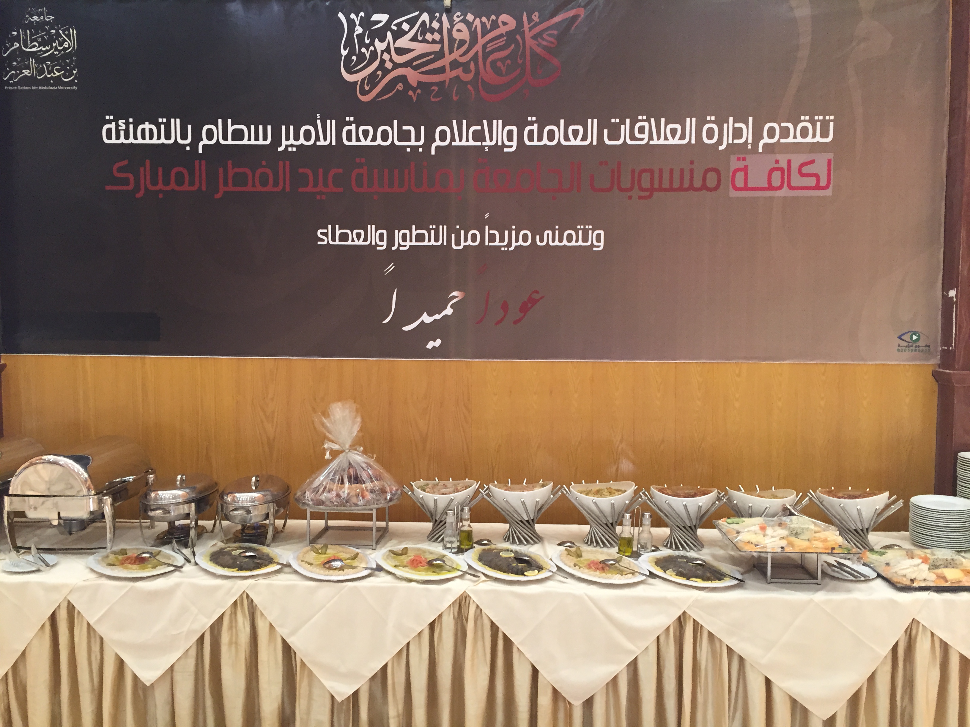 نظمت إدارة العلاقات العامة والإعلام حفل معايدة واستقبال لمنسوبات العمادات والإدارات النسائية المساندة ، وذلك يوم الأثنين الموافق 1436/11/2هـ في البهو الرئيسي لمبنى الهداية، و يأتي ذلك ضمن حرصها على البرامج التي تسهم في بناء شراكة حقيقية بين إدارة العلاقات العامة والعمادات والإدارات المساندة ، و تعزيزاً للعلاقات الاجتماعية بين الموظفات ومنسوبات الجامعة، وتحقيقاً لتوجيهات المشرف العام على العلاقات العامة والإعلام بما يكفل توطيد الصلة ومد جسور العطاء بما يتناسب مع رؤية ورسالة جامعة الأمير سطام بن عبدالعزيز.