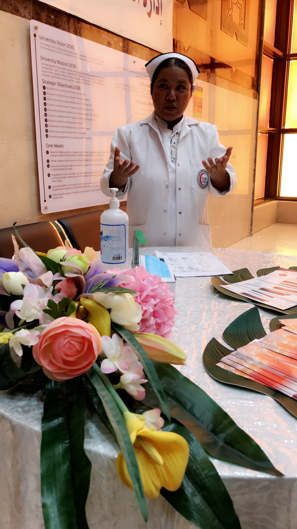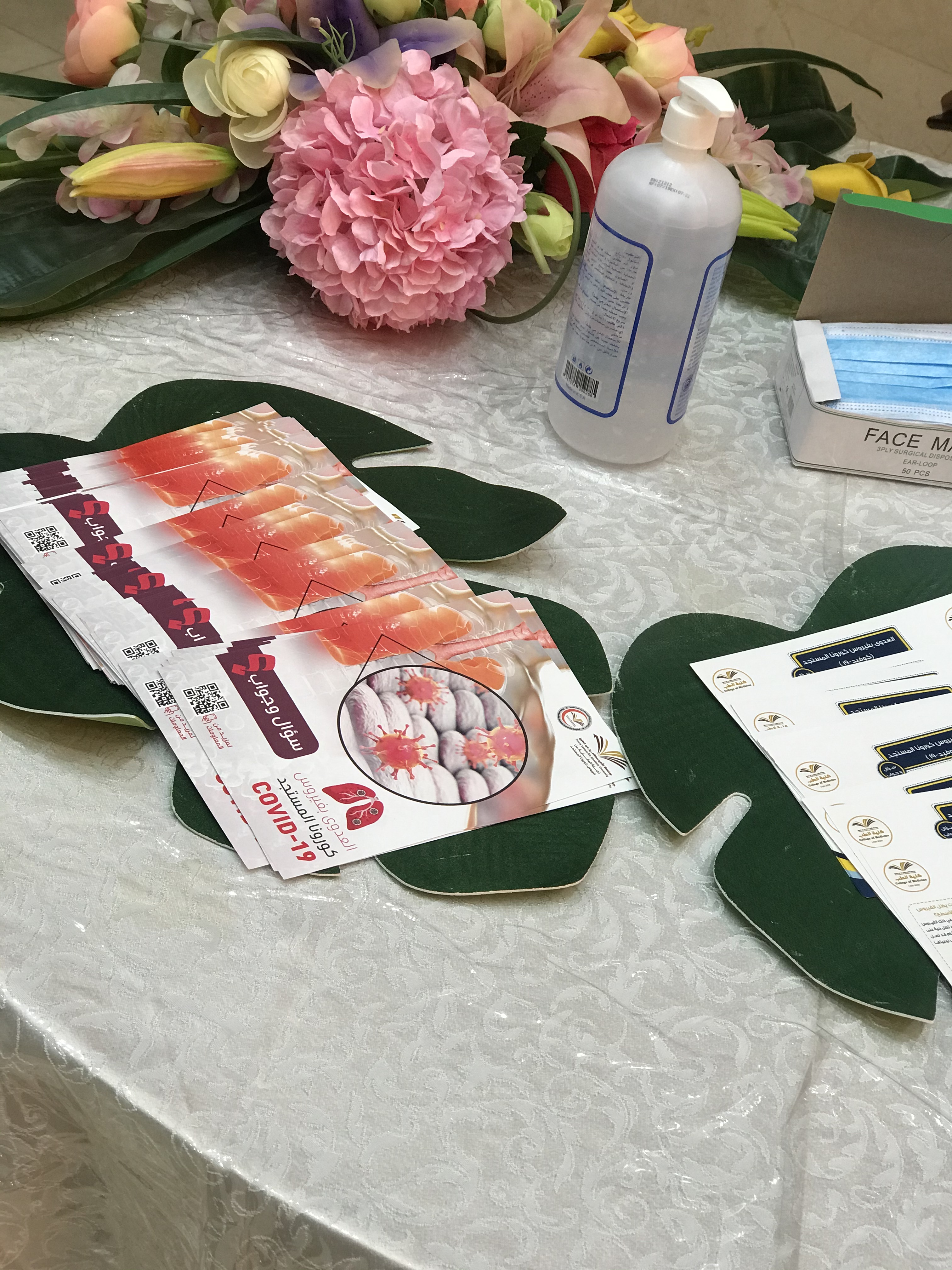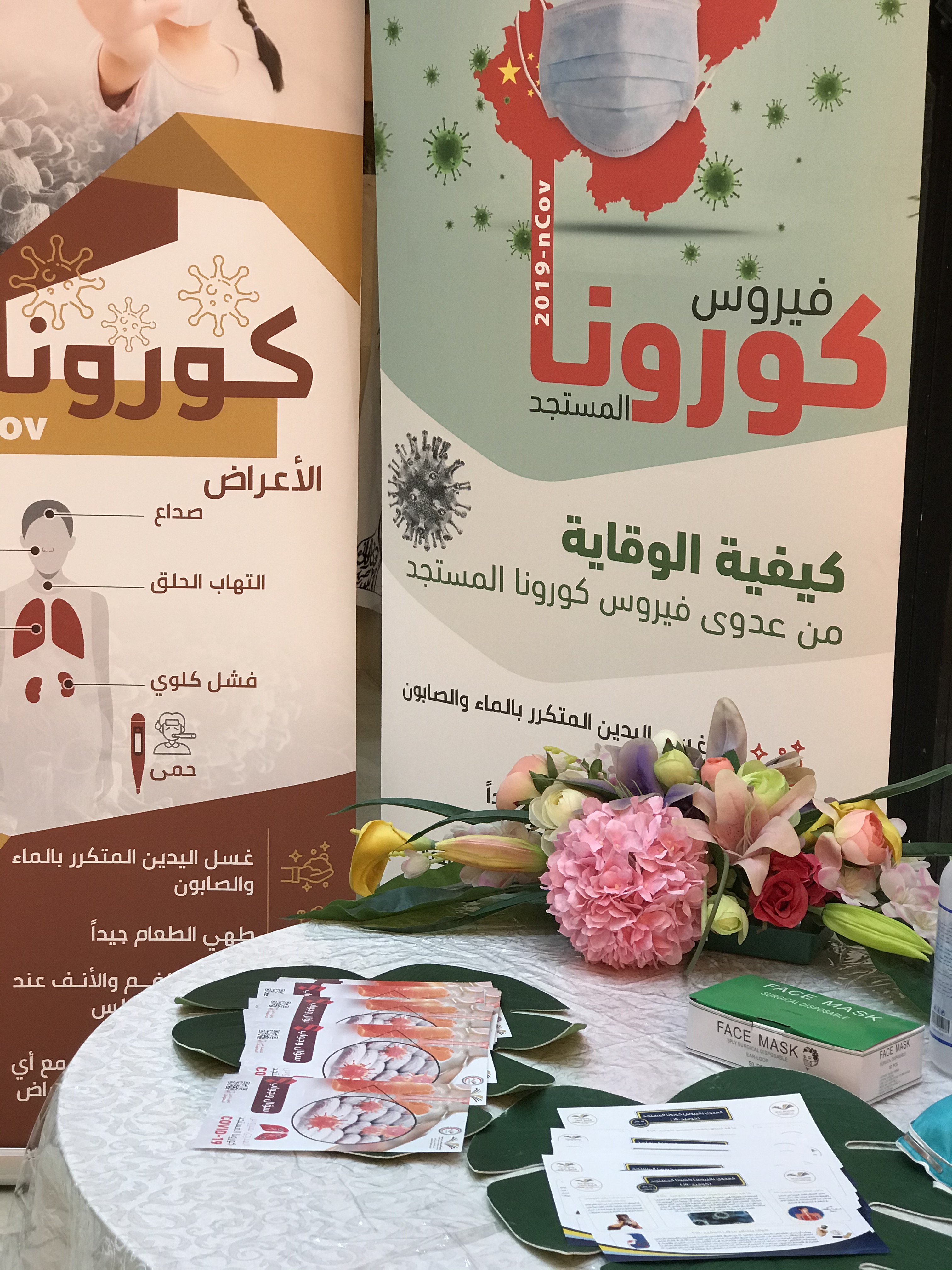 واشتمل الركن التوعوي على نشرات توضح ماهية المرض وأعراضه ومسبباته وطرق انتقاله والعدوى به إضافة إلى وسائل الحماية التي من شأنها المحافظة على النظافة الشخصية والأمة سواء داخل المنازل أو في أماكن العمل والتجمعات العامة ، وقد رافق ذلك شرح توضيحي من قبل إحدى الممرضات الطريقة الصحيحة لغسل الأيدي وتعقيمها.