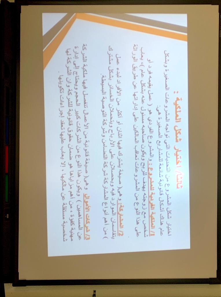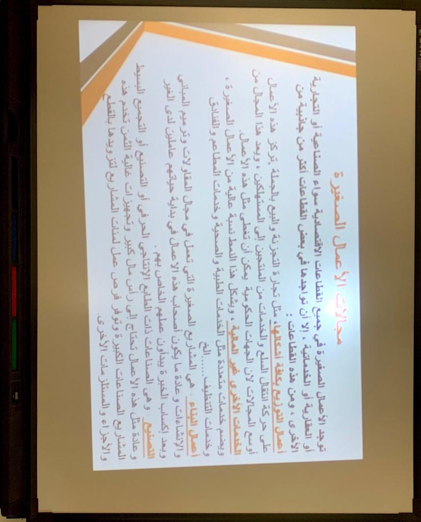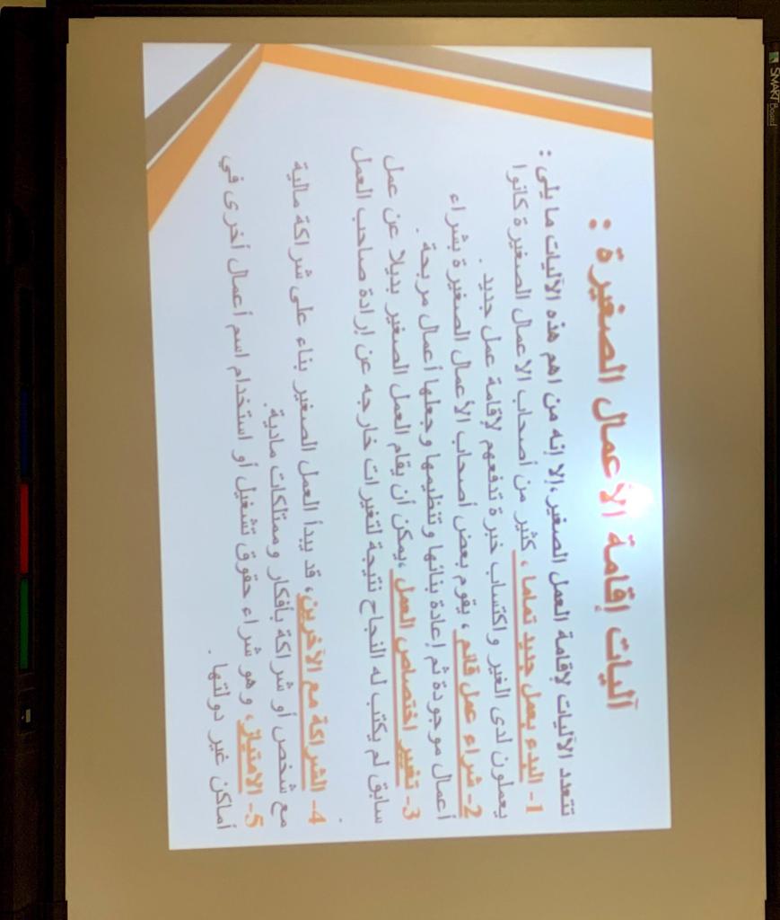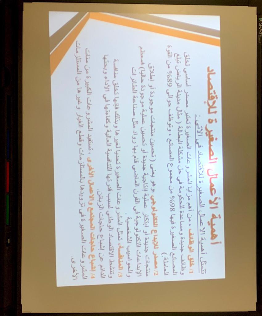 محاضرة بعنوان " إدارة المشاريع الصغيرة و المتوسطة" للتعريف بمحور ريادة الأعمال يوم الأحد الموافق ١٤٤٠/٥/٧ هـ تزامناً مع المنتدى الثقافي للملتقى العلمي الثالث بكلية العلوم الطبية التطبيقية وضمن البرنامج التدريبي معاً للتميز.