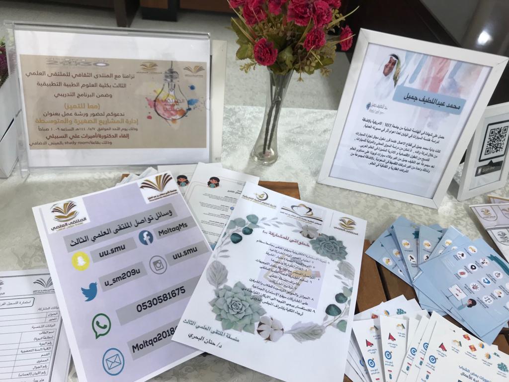 نظمت اللجنة التنظيمية للملتقى العلمى الثالث سلسلة من المحاضرات والورش التدريبية والتعريف بكل محور بكلية العلوم الطبية التطبيقية- بالخرج