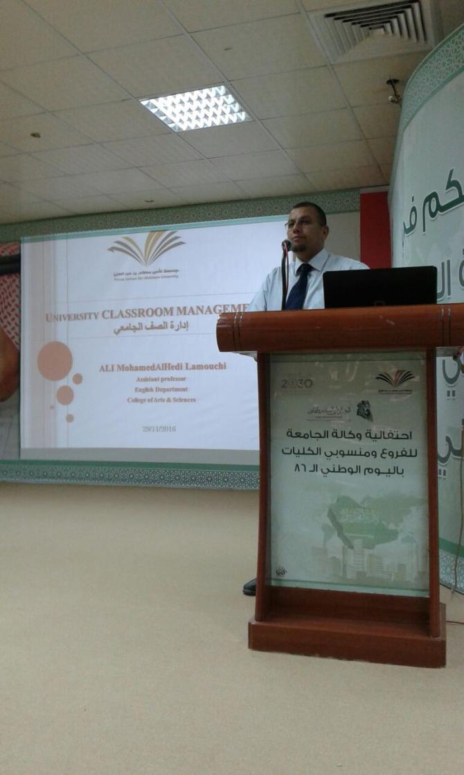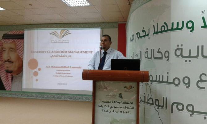 أقامت كلية العلوم والآداب بالوادي ندوة علميّة بعنوان ( إدارة الصف الجامعي) لأعضاء هيئة التدريس، في ضوء توجيهات عميد الكلية د. سفر بن بخيت المدرع وسعيا للنهوض بالعملية التعليمية والأكاديمية بكلية الآداب والعلوم بوادي الدواسر، وحثًّا لأعضاء الهيئة التدريسية على أداء دورهم في عملية إدارة الصف الجامعي، قام بتقديم الندوة د. علي عبدالهادي اللموشي، بحضور ومشاركة فاعلة لأعضاء هيئة التدريس بالكلية، وتضمنت الندوة موضوعات ذات أهمية في إدارة الصف الجامعي والتي اشتملت على المحاور التالية :