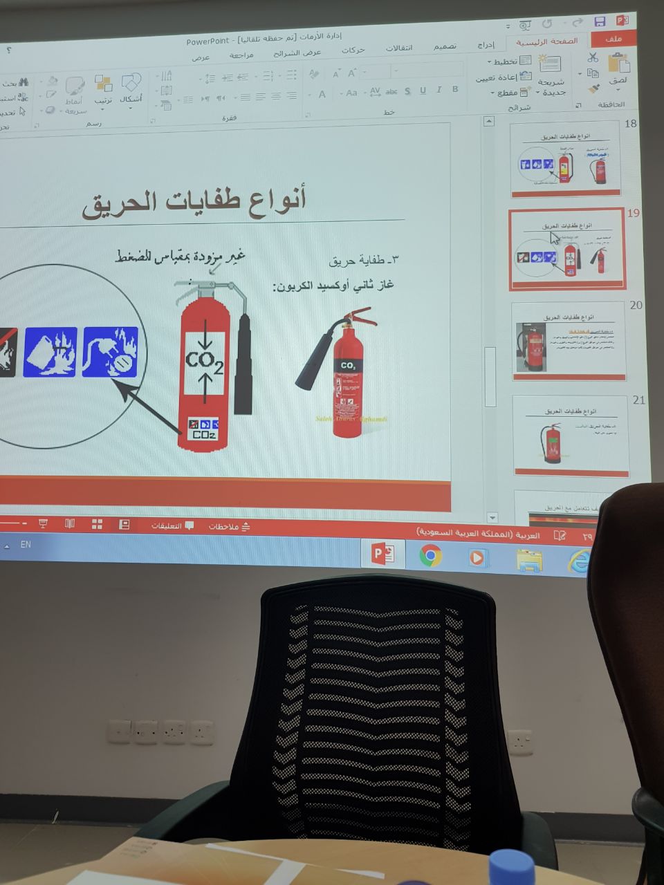 نفذت إدارة السلامة برنامجاً تدريبياً بعنوان (إدارة الأزمات والمخاطر) بكلية التربية (أقسام الطالبات) بالخرج يوم الاربعاء الموافق 1439/7/18هـ في تمام الساعة التاسعة صباحاً وبحضور وكيلة الكلية د. نورة بنت عبدالعزيز العلي.