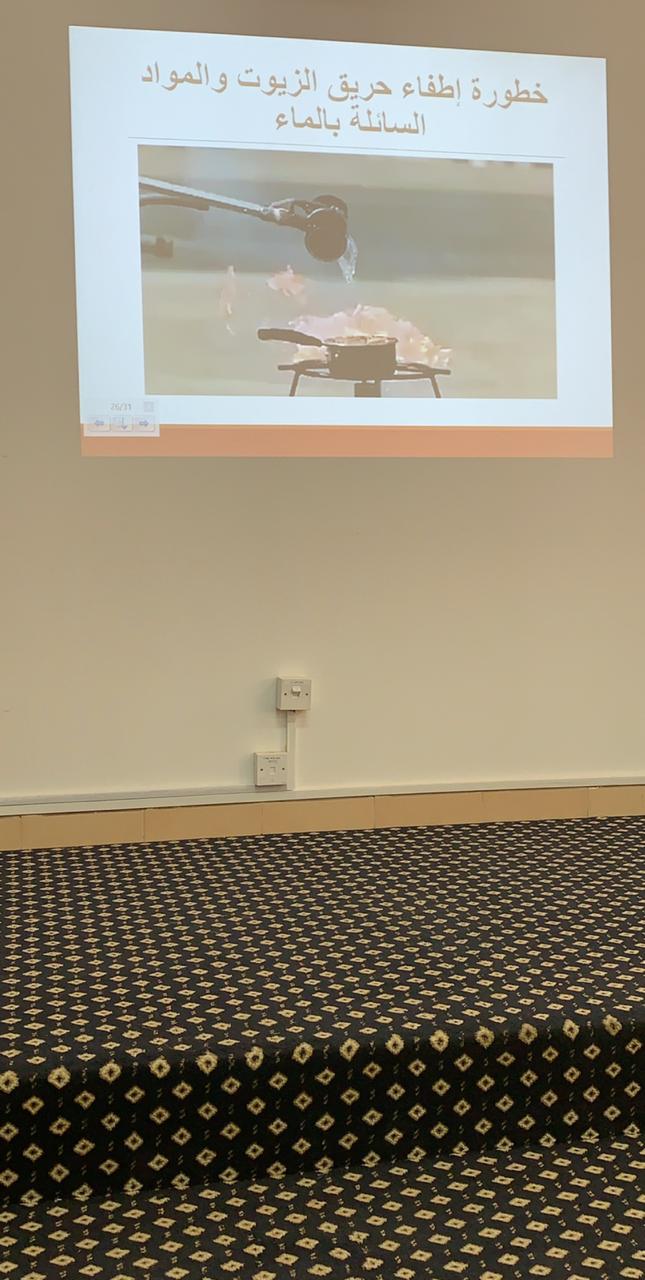 قدمت البرنامج أ/ بنان بنت محمد الموينع ـ مساعدة مدير إدارة السلامة ـ ومشرفات السلامة .حيث وضحت أ/ بنان الموينع الأزمة تعريفها وتصنيفاتها، تناولت بالشرح الحرائق كمثال عليها. حيث ذكرت أسباب الحرائق وأنواعها وطرق الوقاية منها وأنواع طفايات الحريق وطرق استخدامها.