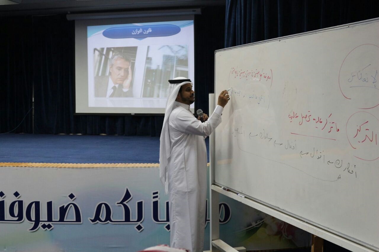 نظمت وحدة التوعية الفكرية ضمن مشروع (نحو جامعة واعية 1) بالتعاون مع كلية الهندسة بوادي الدواسر دورة تدريبية بعنوان (إدارة التغيير الذاتي) قدمها وكيل عمادة خدمة المجتمع والتعليم المستمر وكيل عمادة شؤون الطلاب بالفروع الدكتور خالد بن مطر السهلي والتى أقيمت بمسرح كلية الهندسة وقد حضرعميد الهندسة بالوادي د . مجاهد آل ضيف الله ومساعديه ورؤساء الأقسام وأعضاء هيئة التدريس بالكلية والمجلس الطلابي وعدد من طلاب الكليات بالمحافظة