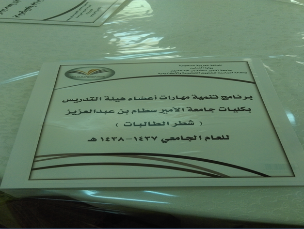 حيث افتتح البرنامج بكلمة لمشرفة الوحدة الإشرافية د.نورة الزعاقي ذكرت فيها حرص وكالة الجامعة للشؤون التعليمية والأكاديمية ممثلة بالوحدة الإشرافية على كليات البنات ، مطلع هذا العام على تقديم مجموعة من الدورات التدريبية الموجهة لعضوات هيئة التدريس والتي تهدف إلي تطوير المهارات التدريبية لهن ، وذلك في أطار سعي الجامعة لدعم عضوات هيئة التدريس وتقديم المفيد لهن ، ووضحت إن البرنامج يشتمل على تسع ورش تدريبية في جميع مقرات كليات البنات التابعة للجامعة وفق الجدول المرسوم لها حيث ستحصل المتدربة على شهادة معتمدة من وكالة الجامعة للشؤون التعليمية والأكاديمية عن كل ورشة حضرتها في هذا البرنامج .