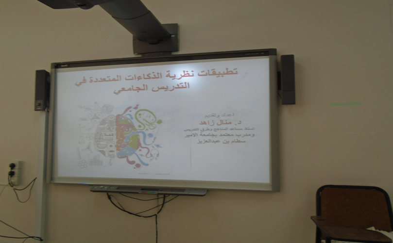 وقد ابتدأ البرنامج بورشة تدريبية بعنوان " تطبيقات نظرية الذكاءات المتعددة في التدريس " من إعداد وتقديم د.منال زاهد أستاذ مساعد المناهج وطرق التدريس بقسم العلوم التربوية بالكلية وعضو في الوحدة الإشرافية، حيث تهدف الدورة على تدريب أعضاء هيئة التدريس على اعتماد استراتيجيات التدريس وفقاً لنظرية الذكاءات المتعددة، بحيث ينعكس تطبيق هذه الإستراتيجيات على الممارسات الأدائية لأعضاء هيئة التدريس داخل القاعة الدراسية ، حيث تم مناقشة مفهوم الذكاء وعلاقته بالتعليم ، وشرح نظرية الذكاءات المتعددة ومدى اختلافها عن الذكاء التقليدي – تصنيف استراتيجيات التدريس وفق نظرية الذكاءات المتعددة – تحديد كيف نتعرف على ذكاءات الطالبات وكيف نحدد أنماط تعليمهن- تطوير مهارات أساسية للأستاذ وفق نظرية الذكاءات المتعددة – تكوين اتجاه إيجابي نحو تطبيق نظرية الذكاءات المتعددة في التدريس الجامعي .