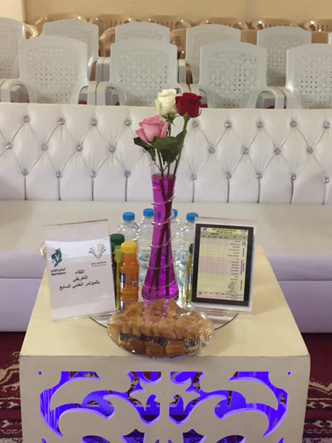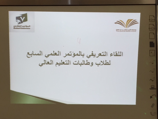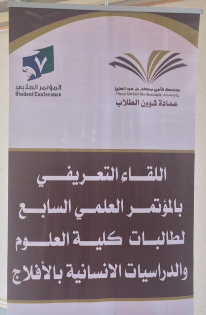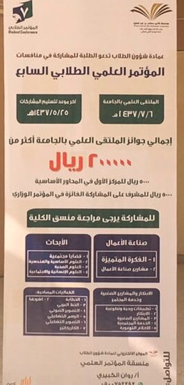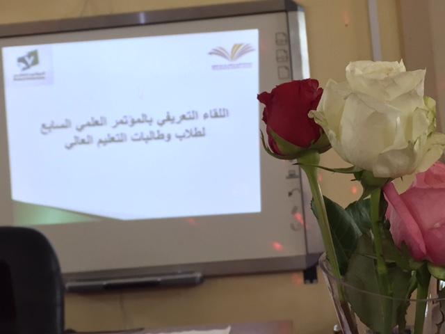 أقامت اللجنة المنسقة للمؤتمر العلمي السابع بكلية العلوم والدراسات الإنسانية بالأفلاج اليوم الأربعاء 1437/4/17هـ في تمام الساعة الحادية عشر في مصلى الكلية لقاء تعريفي بمهام المؤتمر , بحضور وكيلة الشؤون الطلابية د.دلال المطرفي و د.إيمان بوسليم عضو اللجنة العلياء للمؤتمر و مشرفة وحدة الخدمات الطلابية أ. مها حنتوش , قدم اللقاء الأستاذة : بتلاء الجويعدة , بُدء الحفل بآيات من الذكر الحكيم , تلى ذلك عرض نبذة عن أنشطة و إنجازات المؤتمرات السابقة , بعد ذلك ألقت د.دلال المطرفي كلمة اللجنة العلياء للمؤتمر العلمي بجامعة سطام بن عبدالعزيز حيث رحبت بالجميع وثم بينت ما يحويه هذا المؤتمر، و شرحته شرحاً تفصيلياً , بعد ذلك أشادت بالجهوذ المبذولة و شجعت الطالبات اللاتي انضممن في السابق و شحذت همم من لم يلتحق بهذا الركب , بعدها جاءت كلمة منسقة المؤتمر الأستاذة روان الكبيري حيث وضحت طريقة الإشتراك و عرجت على محاور المؤتمر و فعالياته و شروطه و مكافأته فتحدثت عن ذلك بإسهاب , أعقب ذلك كلمة الطالبة الفائزة على مستوى الجامعة في المؤتمر السابق في مجال الرسم التشكيلي هاجر النمشان , تحدثت عن التجربة التي خاضتها و شجعت الطالبات على خوض مثل هذة التجربة و عدم حرمان أنفسهن من جمالها و لذتها و الفائدة العظيمة التي سوف تعود عليهن منها , و في ختام اللقاء أخذ الضيوف جولة على مرافق الخدمات الطلابية, حيث أثنوا على الجهود المبذولة للرقي بالجامعة و رحلوا بكل حفاوة وتقدير بمثل ما استقبلوا به .