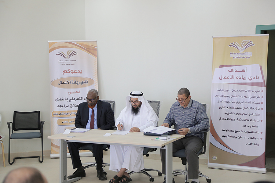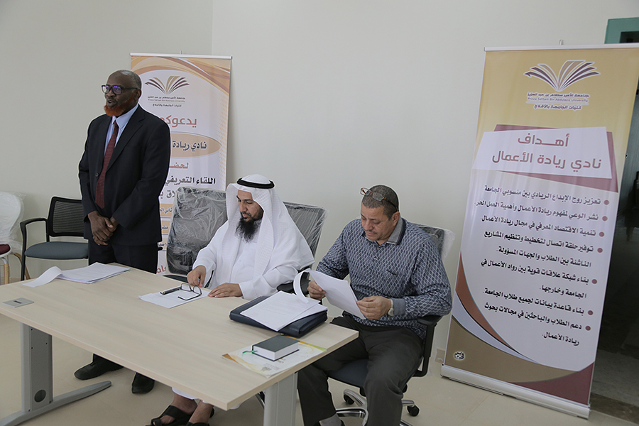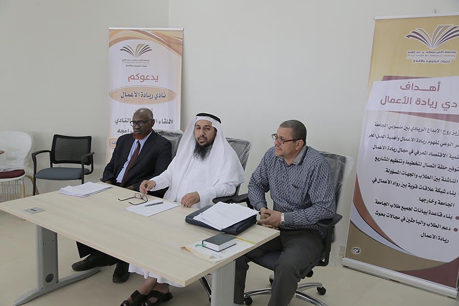 كما نظم نادي ريادة الأعمال يوم الاثنين بعد تدشينه لقاءً تعريفياً استهل بكلمة افتتاحية ألقاها الطالب سامي بن سعد السبيعي رحب فيها بالحضور وبين فيها أن النادي ملتقى مهم لاكتشاف المواهب والمهارات وتطويرها والعمل على تشجيع الإبداع وسط الطلاب وتوفير بيئة جاذبة لتنمية مواهب الطالب، مشيراً ان النادي يتيح للطلاب فرصة التواصل داخل وخارج الجامعة.