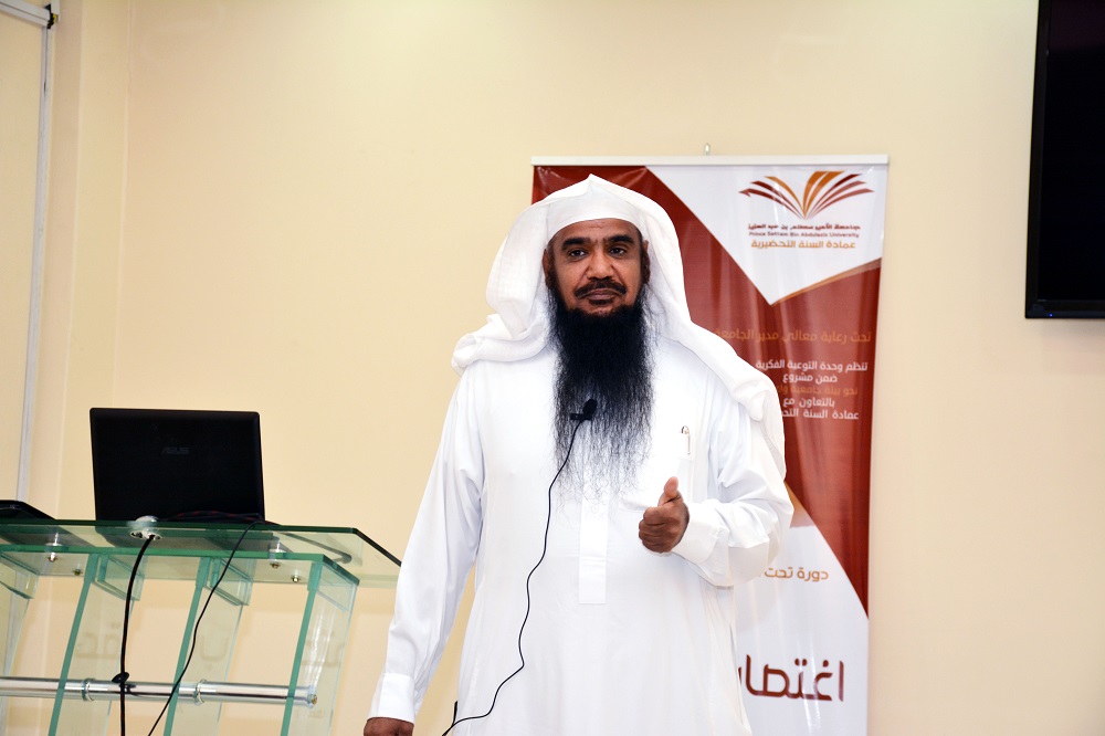 أقيمت بعمادة السنة التحضيرية دورة تدريبية بعنوان: ( اغتصاب العقلِ) وذلك يوم الاثنين 19 / 7/ 1438هـ قدمها الأستاذ الدكتور: خالد بن ابراهيم الدبيان عضو هيئة التدريس بالجامعة ، وذلك ضمن فعاليات (مشروع نحو جامعة واعية1 ) الذي تنظمه وحدة التوعية الفكرية بالجامعة.