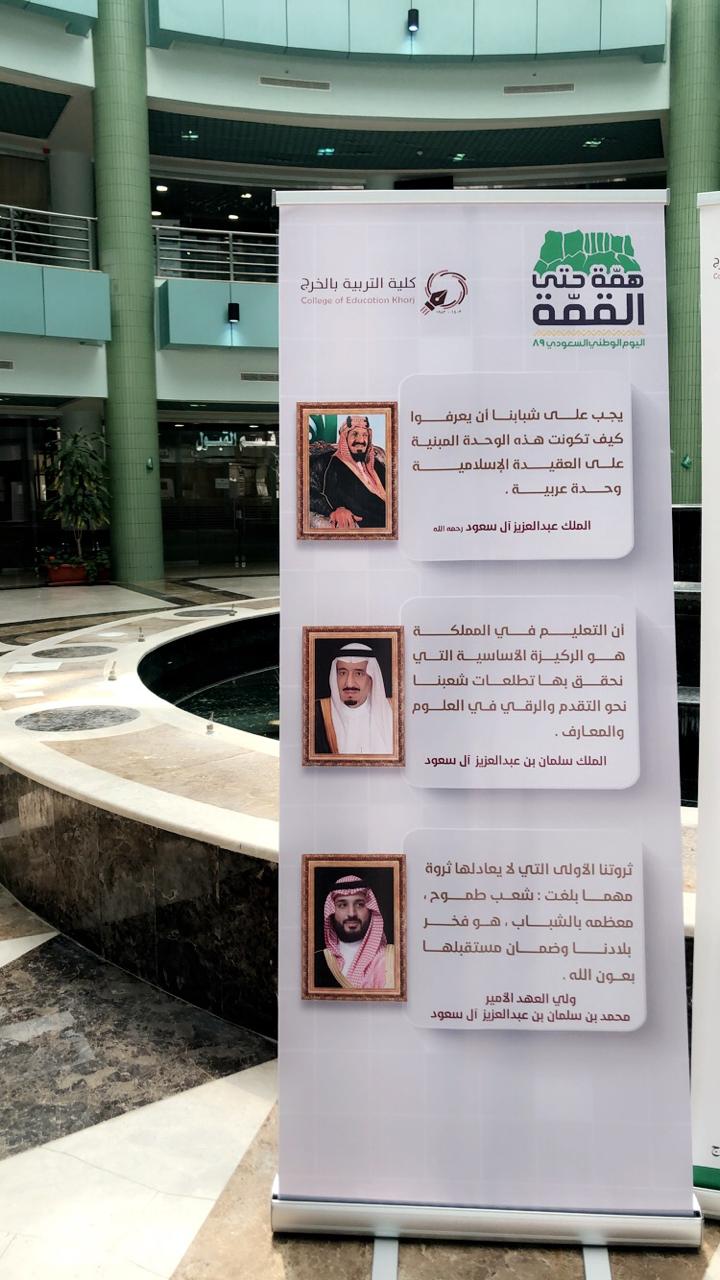 بحضور عميد كلية التربية باالخرج الدكتور عبدالرحمن بن عبيد الرفدي أقامت الكلية إحتفالاً باليوم الوطني89 وذلك بمسرح الكلية يوم الثلاثاء الموافق1441/2/2هـ وذلك بحضور مجموعة من أعضاء هيئة التدريس ومجموعة من الطلاب وقد ابتدا الحفل بالقرآن الكريم وتم عرض سيرة موجزة لأعمال الموؤسس الملك عبدالعزيز رحمه الله وكذلك عرض أبرز منجزات الملك سلمان حفظه الله
