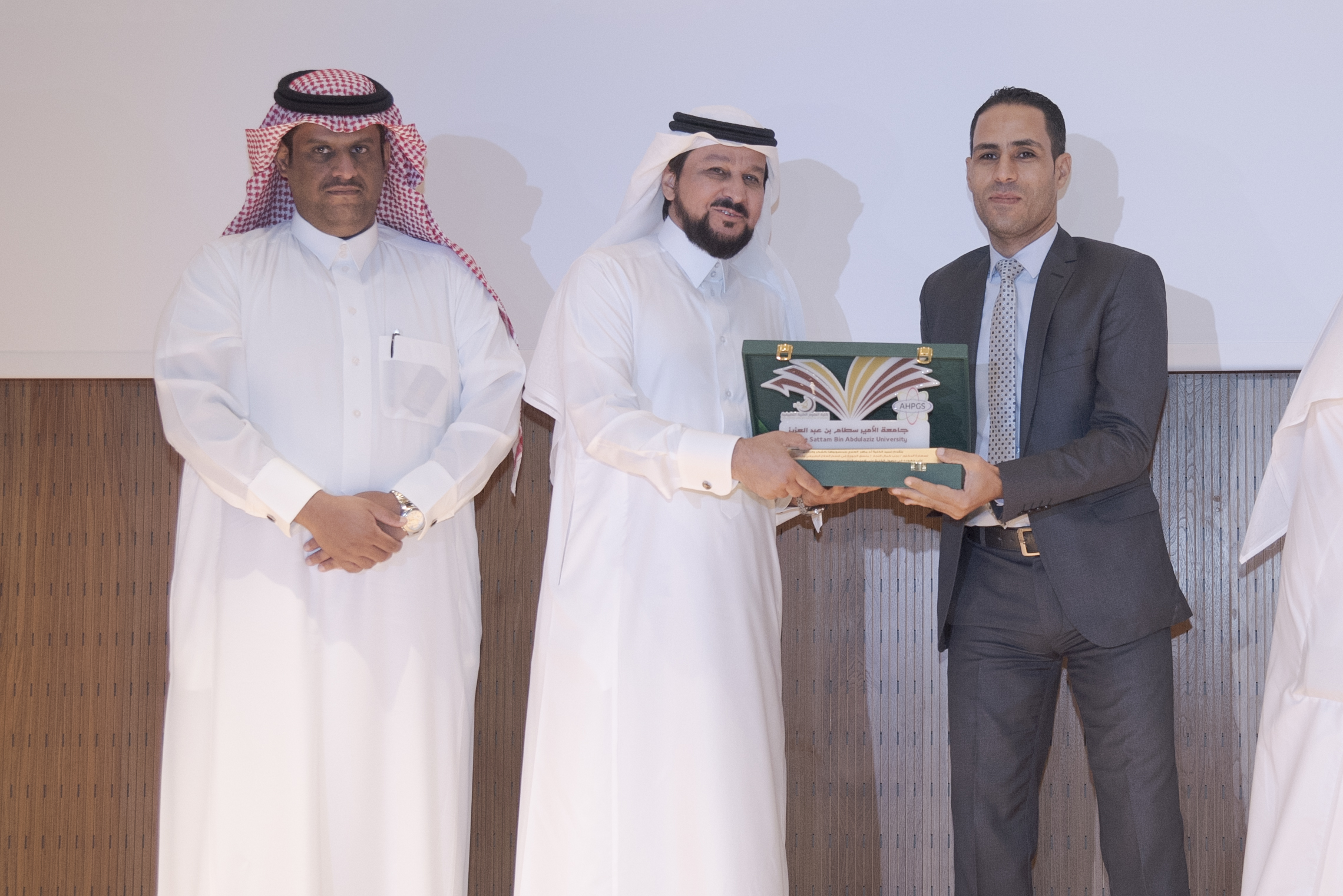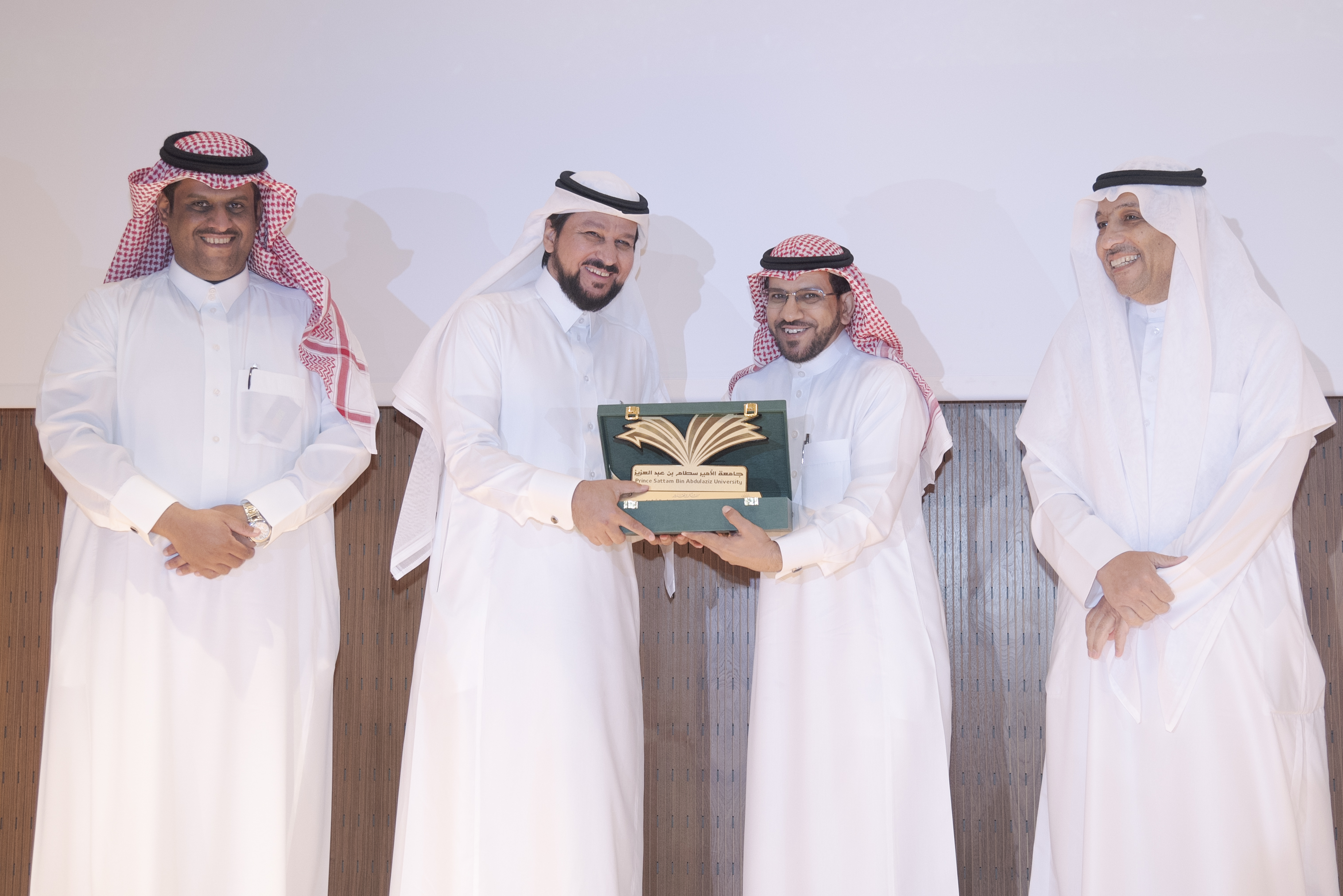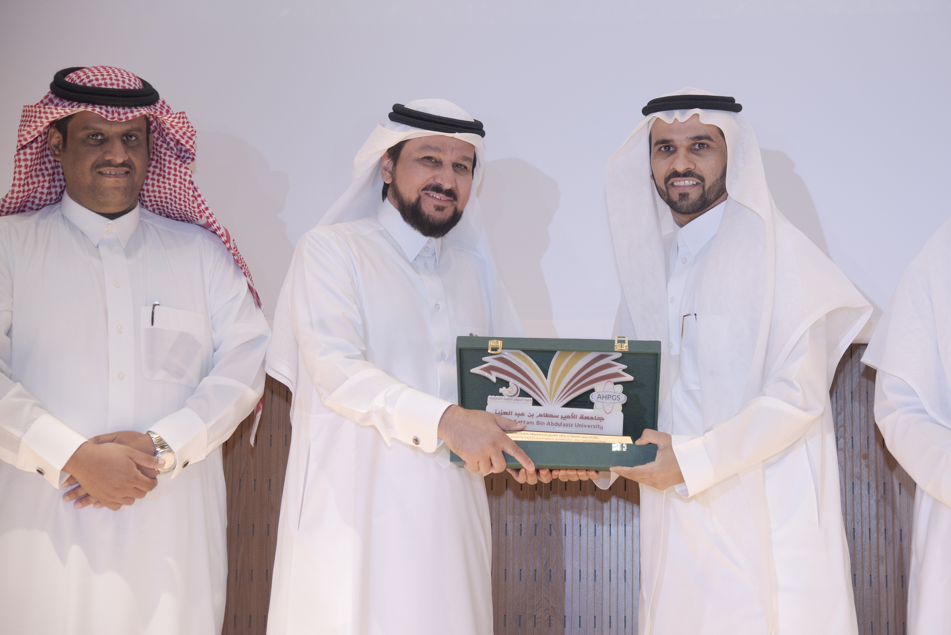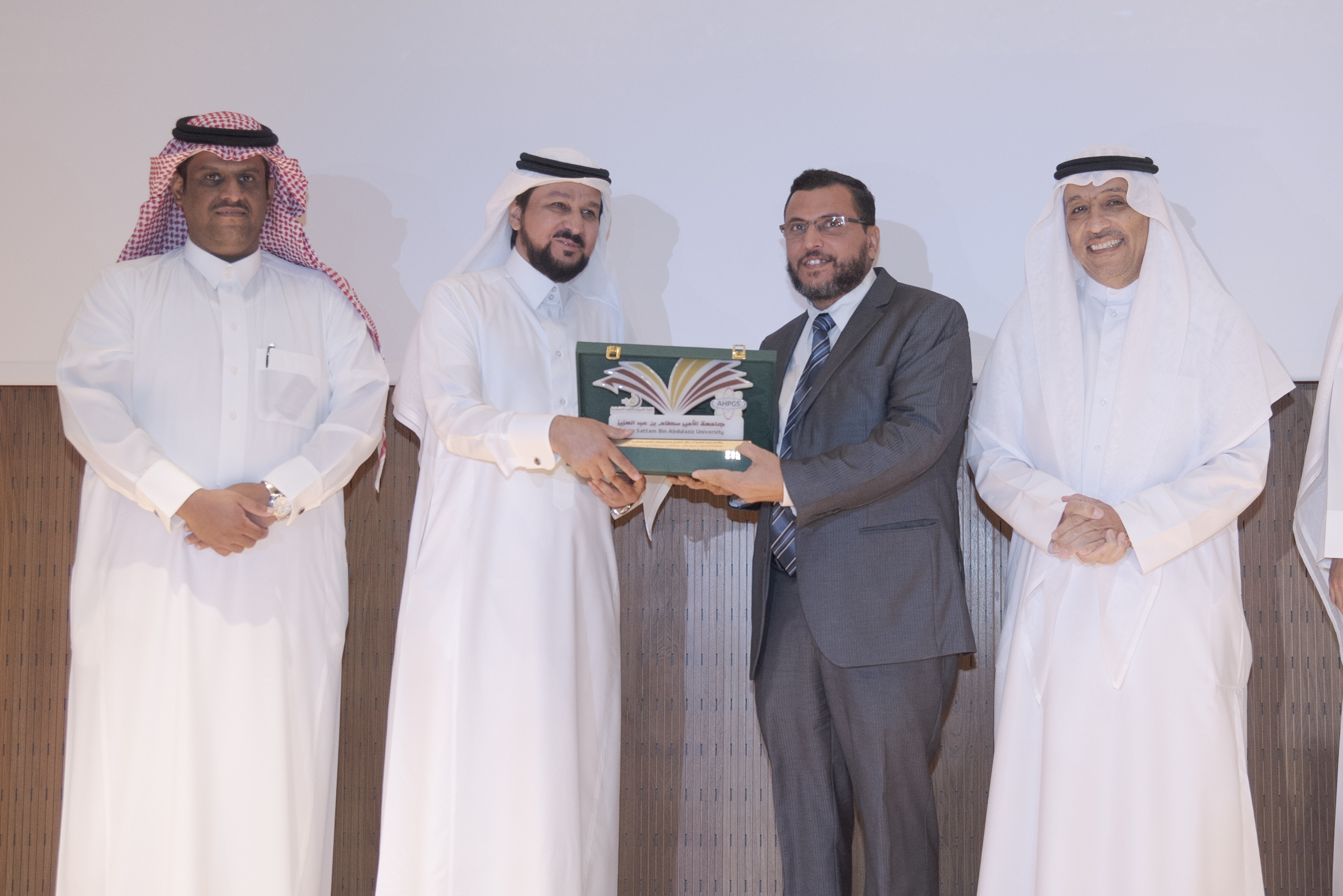 وقد شرف الحفل سعادة وكيل الجامعة الدكتور/ عبدالله بن عبدالله الجمعة وسعادة وكيل الجامعة للشؤون التعليمية والأكاديمية الدكتور / مشاري بن عياد العصيمي وبحضور عدد من وكلاء الجامعة وعمداء الكليات ووكلاء الكليات، ورؤساء الاقسام واعضاء هيئة التدريس والموظفين.