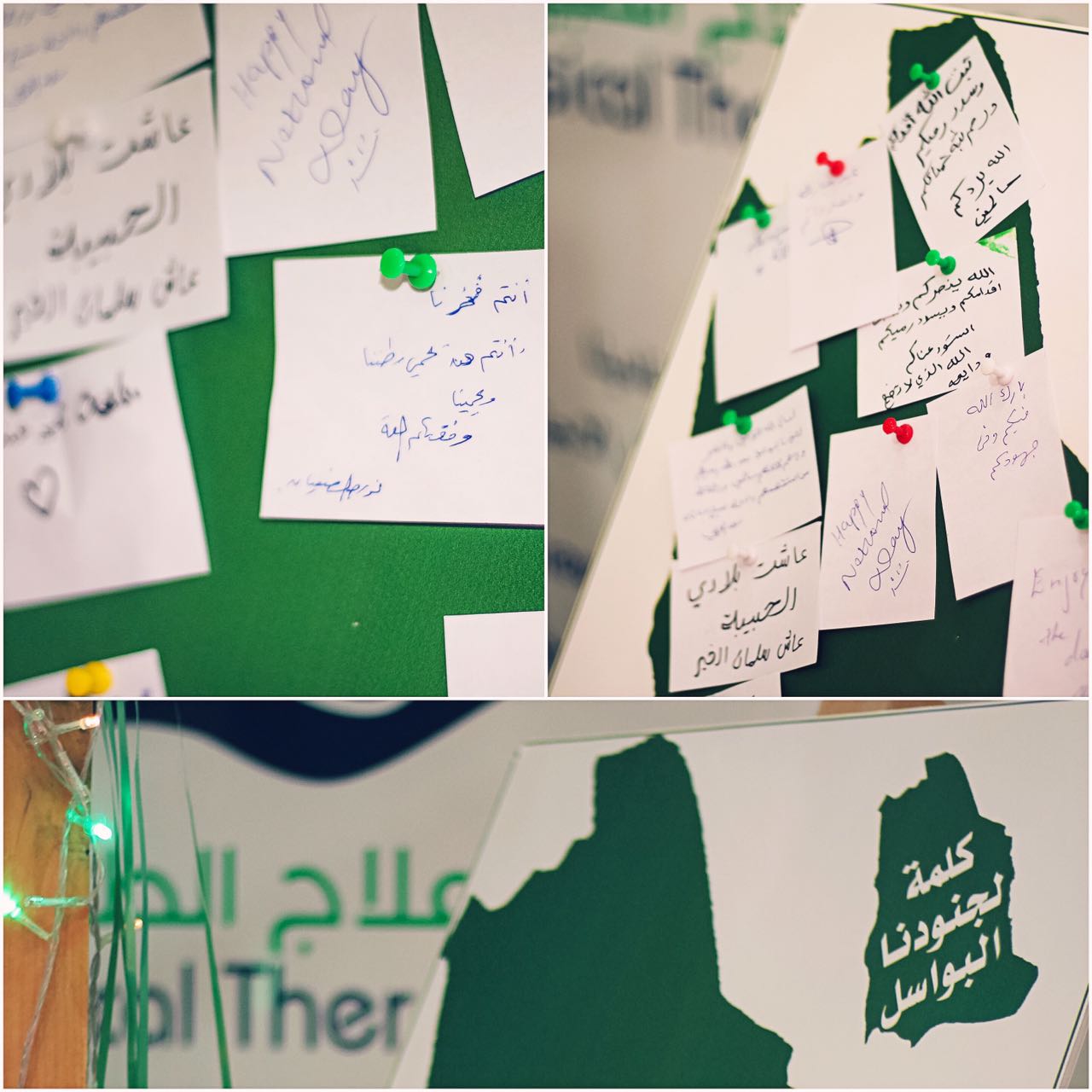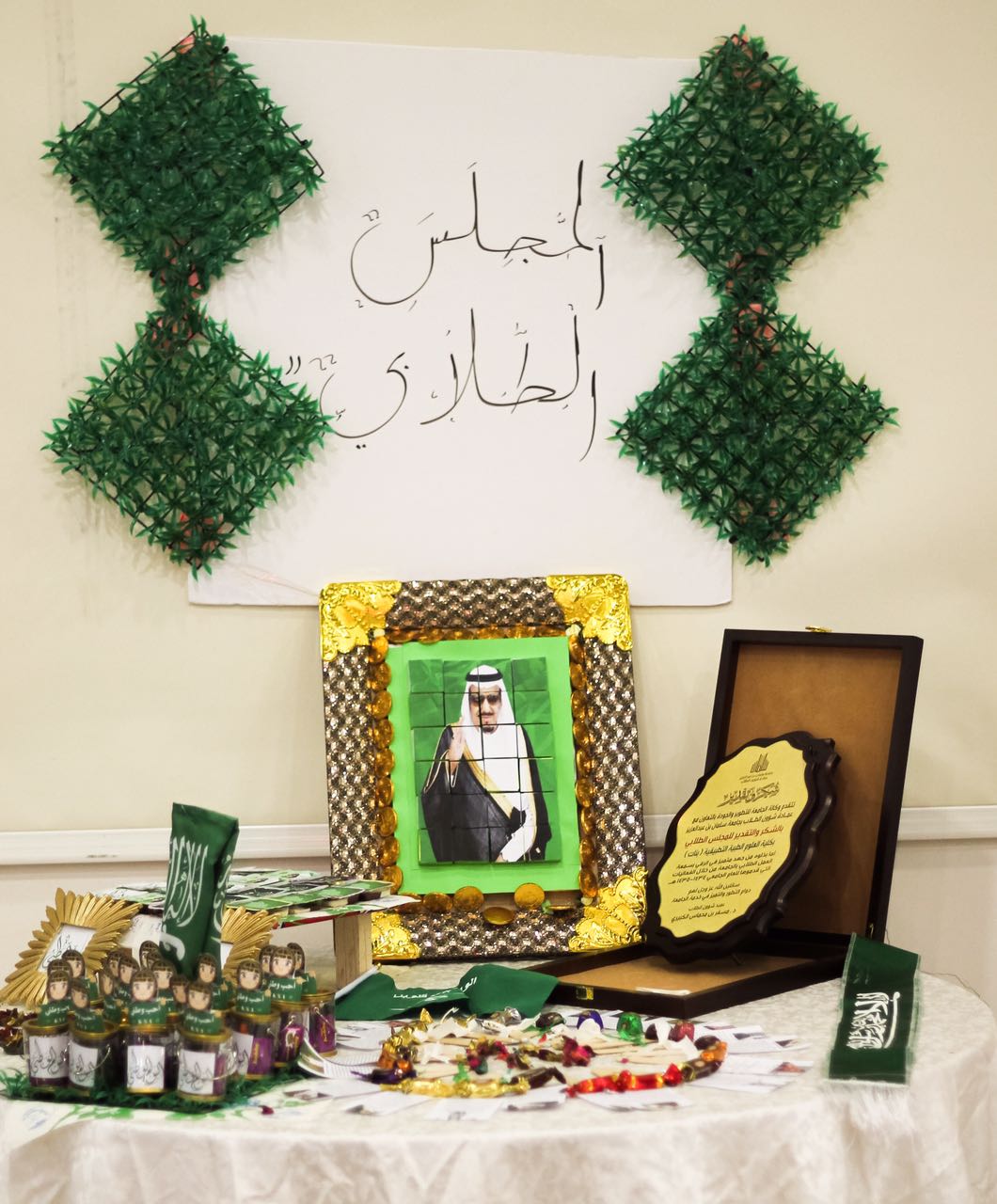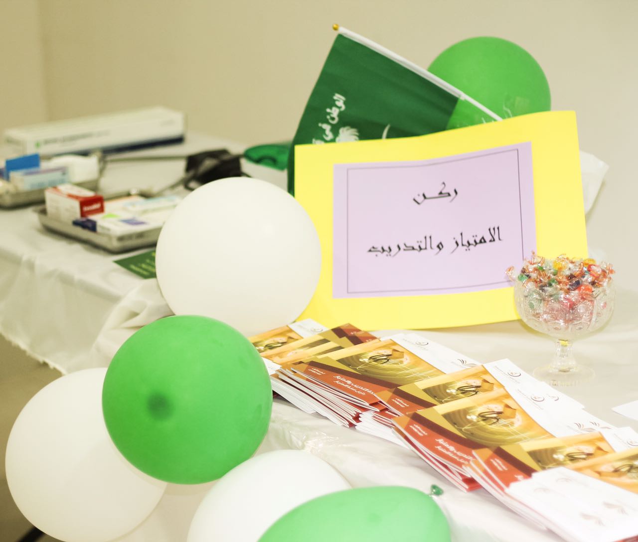 وختاماً قامت وكيلة الكلية وأعضاء هيئة التدريس وجميع منسوبي الكلية بتفقد الأركان المصاحبة وتشكلت لجنة للتقييم للإعلان عن المركز الأول والثاني لأفضل ركن ، وكانت الأركان تحتوي على ركن خاص باليوم الوطني ، أركان اكاديمية لجميع الأقسام ، ركن العيادة الطبية ، ركن المجلس الطلابي ، ركن التدريب والامتياز .