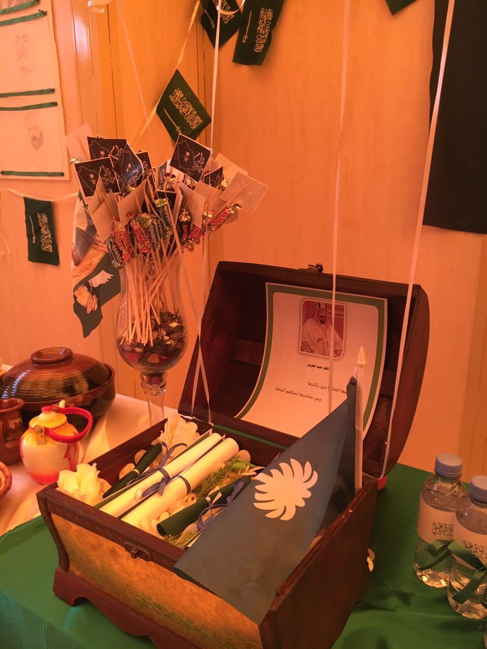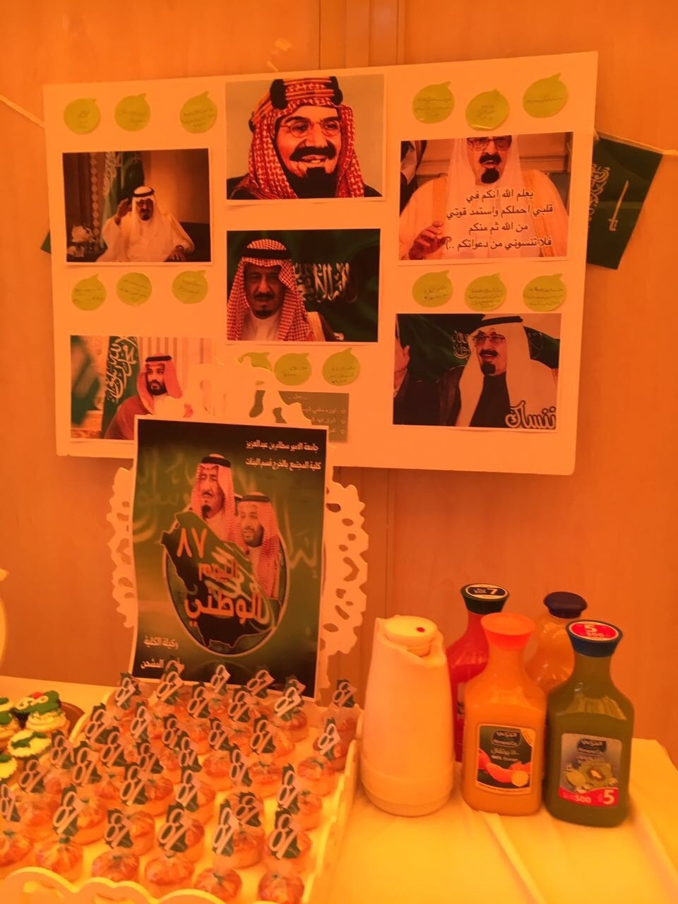 اليوم الوطني للمملكة العربية السعودية هو فرحة لأبنائة المخلصين وحرصًا على تفعيل هذا اليوم العظيم قامت كلية المجتمع -شطر الطالبات- يوم الخميس الموافق 8/1/1439هـ بالاحتفاء باليوم الوطني لتوحيد المملكة العربية السعودية السابع والثمانين وقد تنوعت الفقرات بين الماضي والحاضر وتنقلت بين أمجاد الوطن الغالي حيث استهل الحفل بسكينة مع آيات الله الكريم بعد ذلك بدأت الرحلة مع وقفه مهيبة للسلام الملكي تلاها كلمة وكيلة الكلية د/ أمينه عبدالرحمن المشحن , بهذه المناسبة ثم قصيدة في حب الوطن وتم عرض برنامج مرئي من إنتاج الطالبات تتضمن المسيرة الخالدة لهذا الوطن الغالي , ثم أشعل الحماس في نفوس الطالبات بمسابقة تاريخية وتم توزيع الهدايا فيها للطالبات الفائزات، وقد اختتم الحفل بكلمة ختامية والنشيد الوطني .