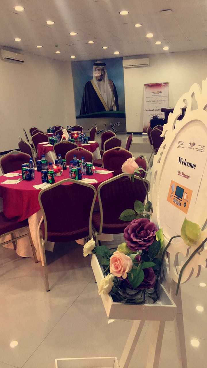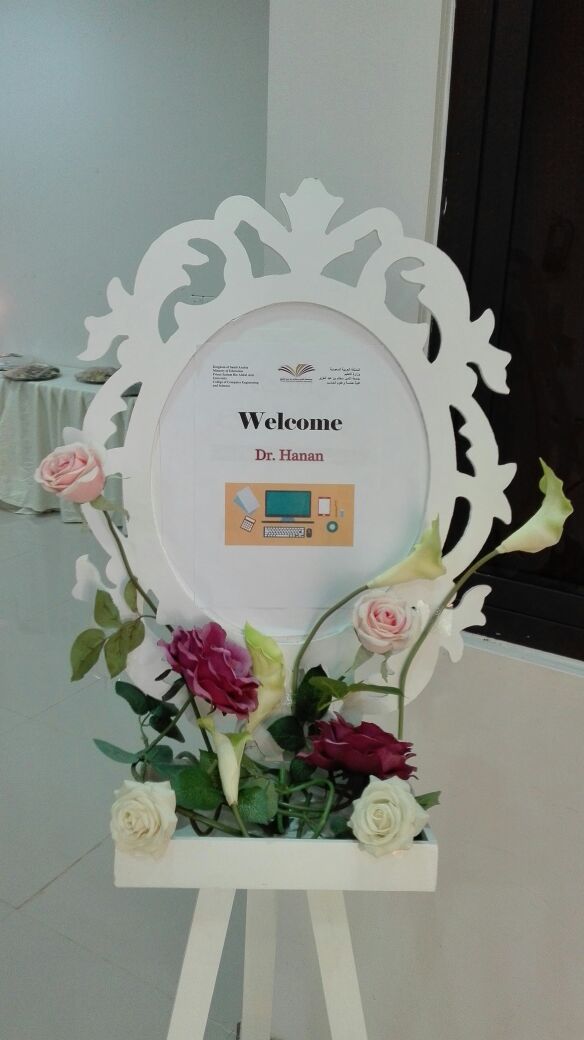 أقيم بكلية هندسة وعلوم الحاسب يوم الخميس الموافق 26 / 1 / 1438 حفل استقبال لوكيلة الكلية الدكتورة حنان بنت عبدالله البلوي .. حيث رحبت الدكتورةأمل البري مساعدة العميد للشؤون التعليميه والأكاديمي