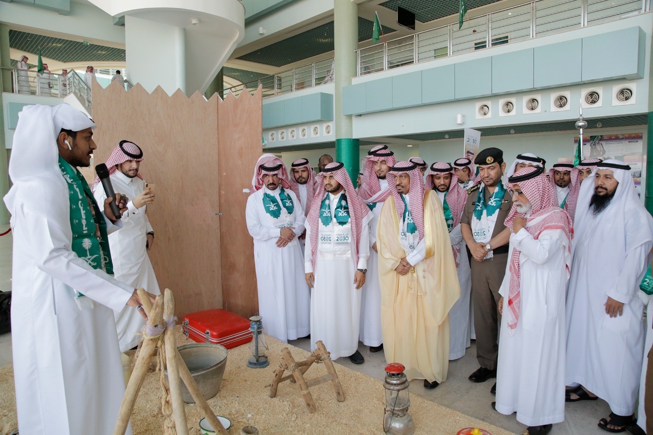 وشهد الحفل بحضور سعادة المشرف العام على كليات جامعة الأمير سطام بن عبد العزيز الدكتور مسفر بن محماس الكبيري وعدد من مدراء الإدارات الحكومية بالمحافظة وأعضاء هيئة التدريس والموظفين والطلاب بكليات الأفلاج افتتاح المعرض الذي احتوى على مشاركات عدد من الجهات الحكومية المدنية والعسكرية وضمت أركانه مشاركات تحاكي حياة الماضي والتطورات العصرية التي تشهدها المملكة.