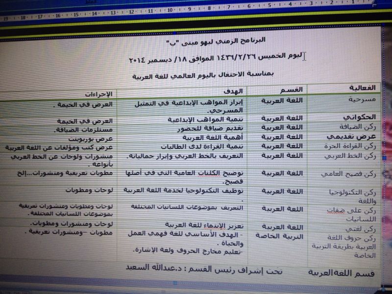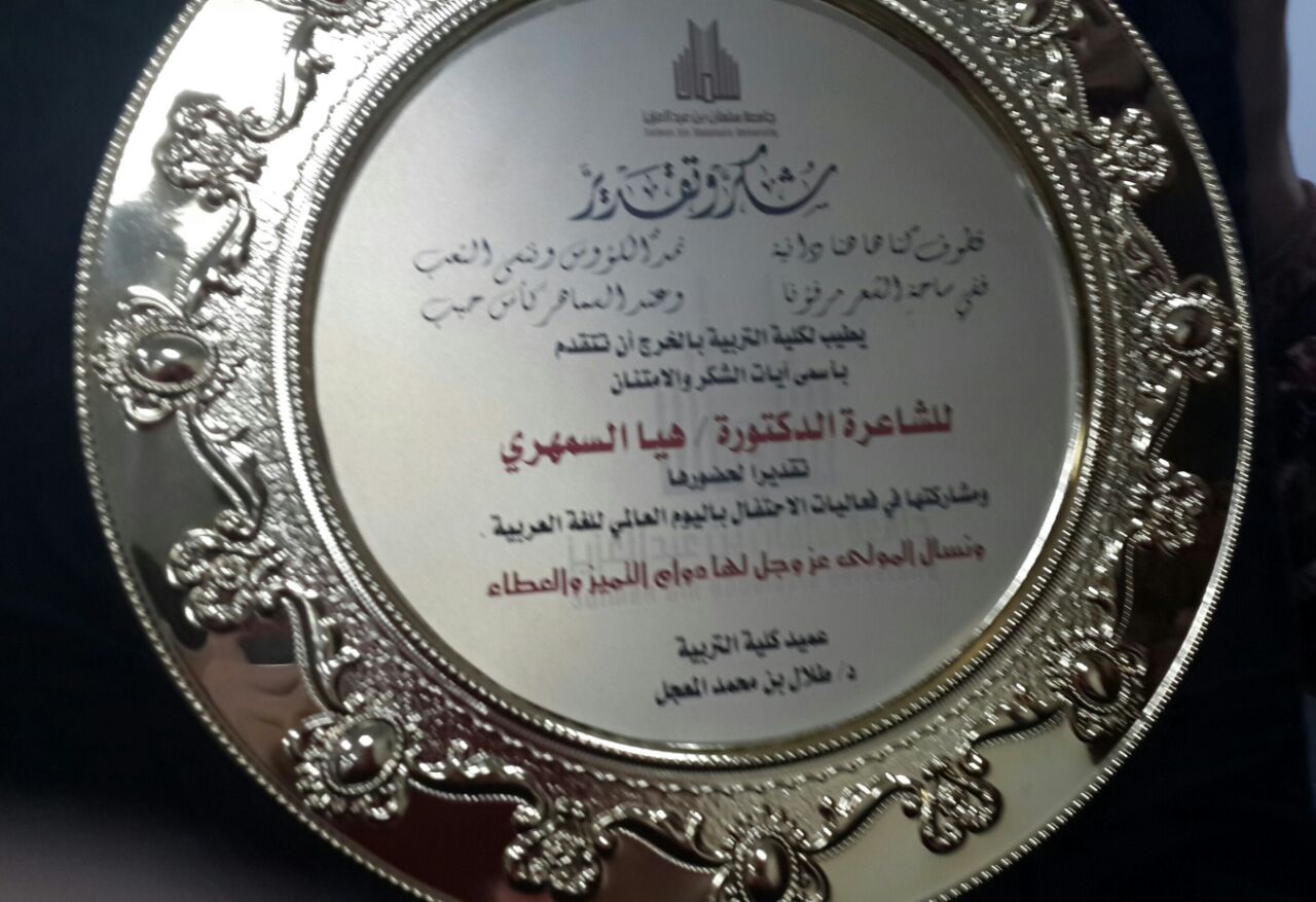 أقام قسم اللغة العربية بكلية التربية بالخرج بإشراف عميد الكلية الدكتور طلال المعجل يوم الخميس الماضي احتفالًا بمناسبة اليوم العالمي للغة العربية وبمشاركة من بقية أقسام الكلية وبحضور الدكتورة الشاعرة هياء السمهري مديرة التدريب والابتعاث في وزارة التربية والتعليم والاستاذة سارة الخزيم صاحبة صالون سارة الثقافي بالخرج وقد أقيم معرض مصاحب تحت شعار (حرفي العربي رمزي الذي أحيا به ) في بهو مبنى (ب) شاركت فيه أقسام الكلية بأركان مختلفة وقدم قسم اللغة العربية مسرحية بعنوان (صورة النقد في خيمة النابغة )مُثلت فيها شخصيات الشعراء في العصر الجاهلي وفي خيمة (مجلس الحكواتي ) رُويت قصة لابن زريق وقصيدته اليتيمة وفي قاعة الأنشطة أقيم البرنامج الاحتفالي بإشراف الدكتورة عبير إسحاق والدكتورة عرفة محمد وأ.عائشه جراح وبدأ الاحتفال بكلمة ترحيبية من وكلية الشئون التعليمية د. مليحة القحطاني فكلمة د. نورة الزعاقي مستشارة مدير الجامعة .ثم استضافت وكلية القسم د. عبير اسحاق ،الشاعرة د.هياء السمهري في أصبوحة شعرية تحدثت فيها عن تجربتها الأدبية ثم ألقت د.أسماءالموزان قصيدة أهدتها إلى اللغة العربية بعنوان(نقش من حروف المحبة) نالت استحسان الحضورثم قدم بعدهاعرض وثائقي بعنوان(حكاية شرف وعز ومجد) بإشراف أ.منى التويم ثم كرم القسم مديرة الصالون الثقافي بالخرج الاستاذة سارة الخزيم تقديرا لجهودها التطوعية في نشر الثقافة العربية بالمجتمع النسوي وبعد ذلك دار حوار حول خدمة الصالونات الثقافية لمجالات اللغة العربية ودورها في تكريس قيم الولاء لدى فئات المجتمع وختم البرنامج الاحتفالي بمسابقة لغوية وأدبية قدمت فيها الجوائز للفائزات كما قدم الشكر الجزيل لقسم اللغة العربية على رعاية الاحتفال ونجاح فعالياته.