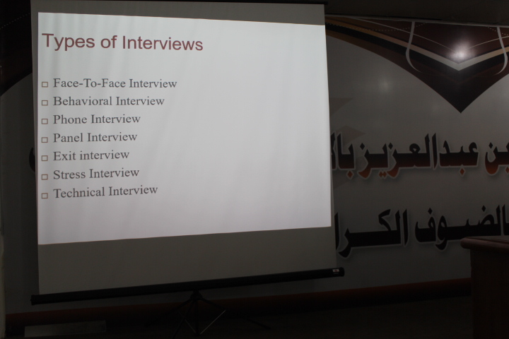 قامت وحدة الخريجات (التأهيل الوظيفي) بكليات الأفلاج (قسم الطالبات) يوم الأربعاء الموافق 1441/6/25هـ الساعة العاشرة صباحاً في المسرح بتنظيم دورة بعنوان (اجتياز المقابلة الشخصية) قدمتها أ. هبه محمد عبدالله، تهدف الدورة إلى التعريف بأهمية المقابلة الشخصية، وبيان كيفية نجاح الطالبة في اجتياز المقابلة الشخصية، وأبرز الأسئلة الشائعة في المقابلات الشخصية، كما تطرقت إلى أنواع المقابلات، وذكرت أهم النصائح التي يجب اتباعها والعمل بها عند إجراء المقابلة الشخصية، واختتمت الدورة بالإجابة عن استفسارات الطالبات.