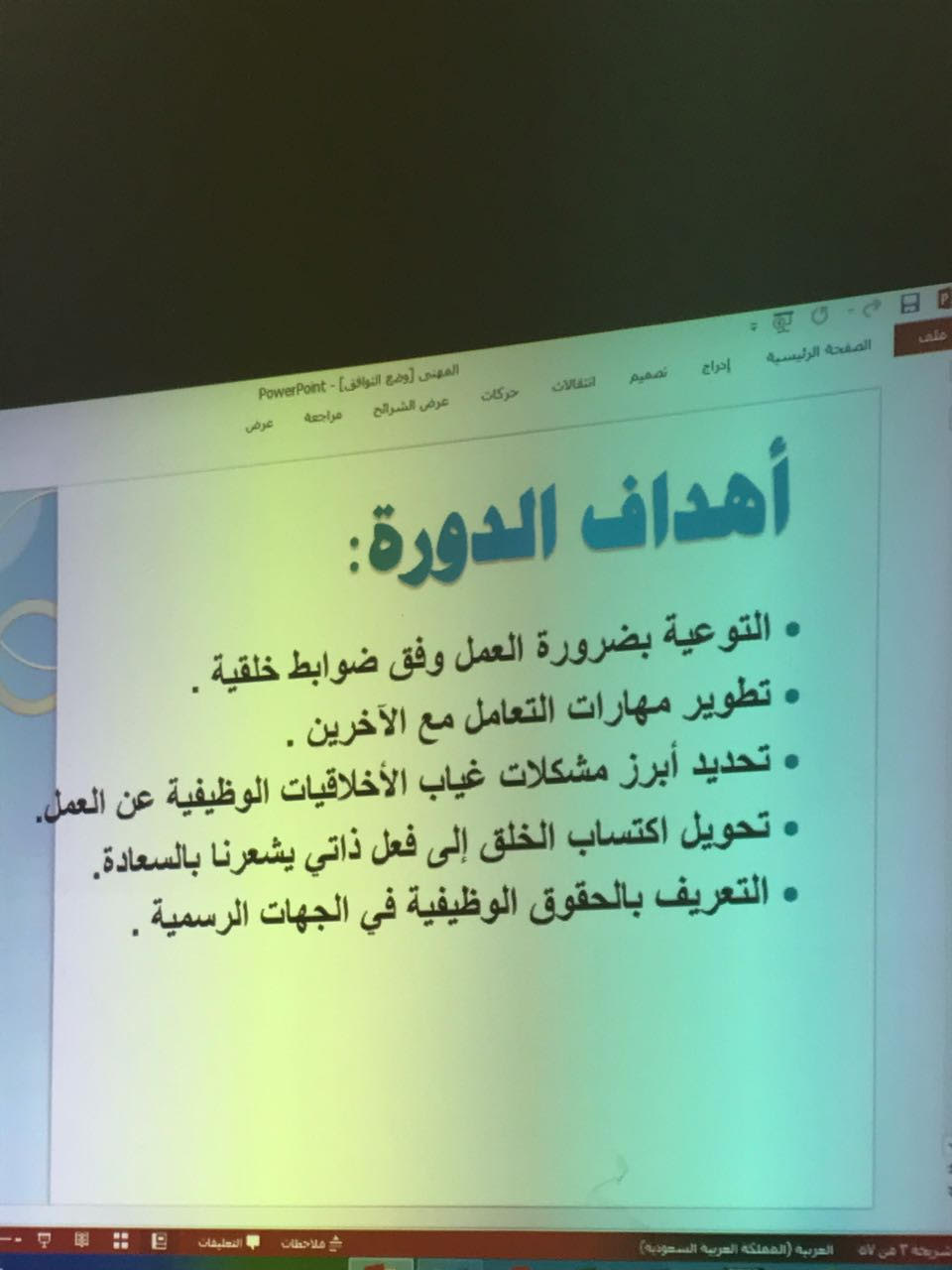 نظمت لجنة التطوير الاداري التابعة لوحدة التطوير والتدريب دورة تدريبة بعنوان (أخلاقيات المهنة) يوم الأربعاء 12 /2 / 1439 هـ، قدمتها الدكتورة بثينة فرح والدكتورة فاطمة التاج تناولت الدورة مفاهيم أخلاق المهنة وأخلاقيات التعامل الوظيفي. استمرت الدورة ثلاث ساعات وكان عدد الحضور 15 ادارية وفي نهاية الدورة قيم الحاضرون المحتوى المعروض من خلال استبيان الكتروني حيث حصلت الدورة على تقييم ممتاز.