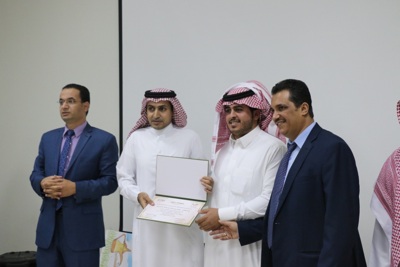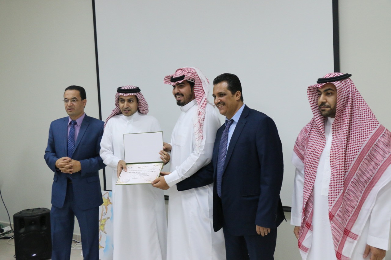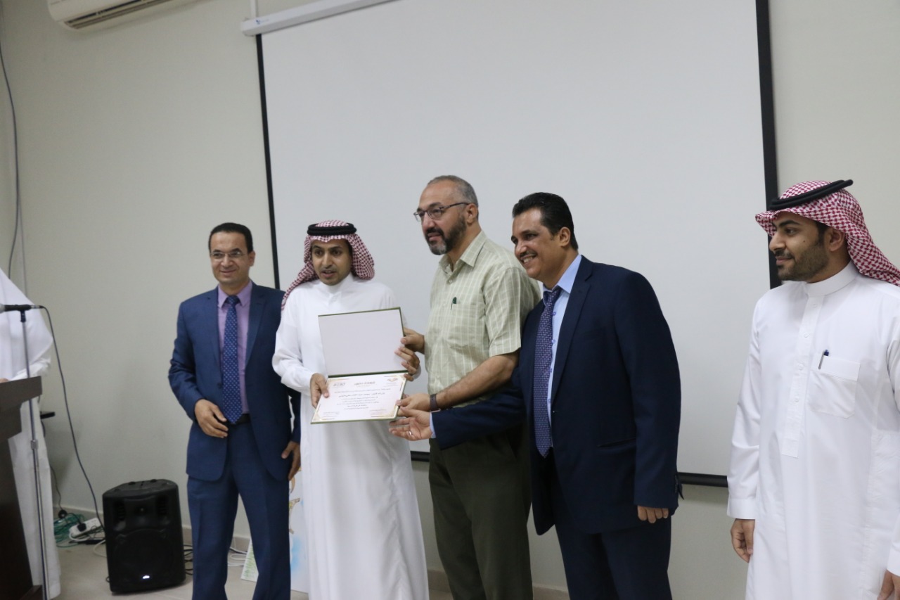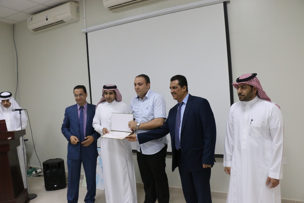 وبعدها قام عميد الكلية بتكريم د. محمد حسن الأبيض الحاصل علي درع التميز والمركز الأول كأفضل مشرف للأنشطة الطلابية في الجامعة للعام الجامعي 1439- 1440 هـ ، وتوزيع شهادات التكريم والجوائز على الطلاب المتميزين في الأنشطة الطلابية تقديراً لما بذلوه من جهود مثمرة في مختلف الأنشطة والفعاليات، كما تم توزيع شهادات حضور الدورات التدريبية على أعضاء هيئة التدريس والطلاب التي نفذتها الكلية بالتعاون مع وكالة عمادة شؤون الطلاب للفروع .