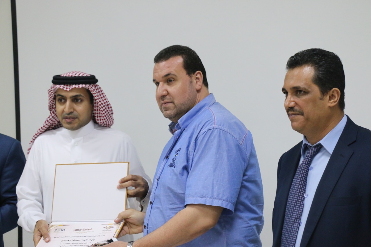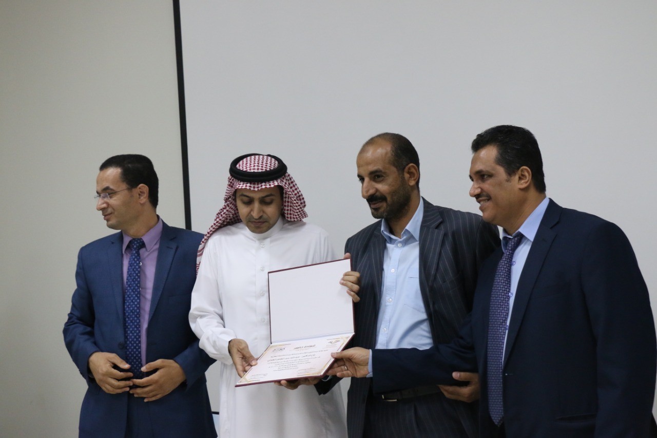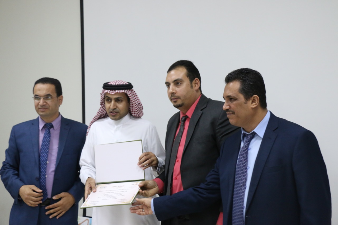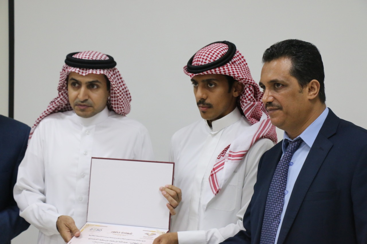 وبعدها قام عميد الكلية بتكريم د. محمد حسن الأبيض الحاصل علي درع التميز والمركز الأول كأفضل مشرف للأنشطة الطلابية في الجامعة للعام الجامعي 1439- 1440 هـ ، وتوزيع شهادات التكريم والجوائز على الطلاب المتميزين في الأنشطة الطلابية تقديراً لما بذلوه من جهود مثمرة في مختلف الأنشطة والفعاليات، كما تم توزيع شهادات حضور الدورات التدريبية على أعضاء هيئة التدريس والطلاب التي نفذتها الكلية بالتعاون مع وكالة عمادة شؤون الطلاب للفروع .