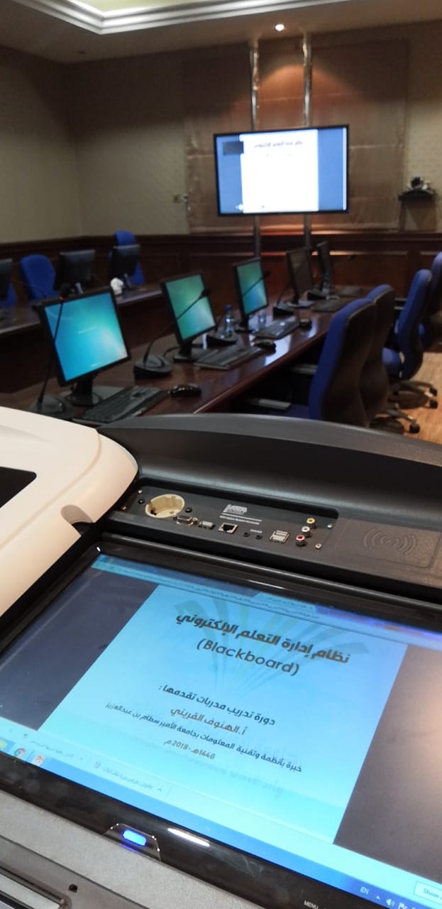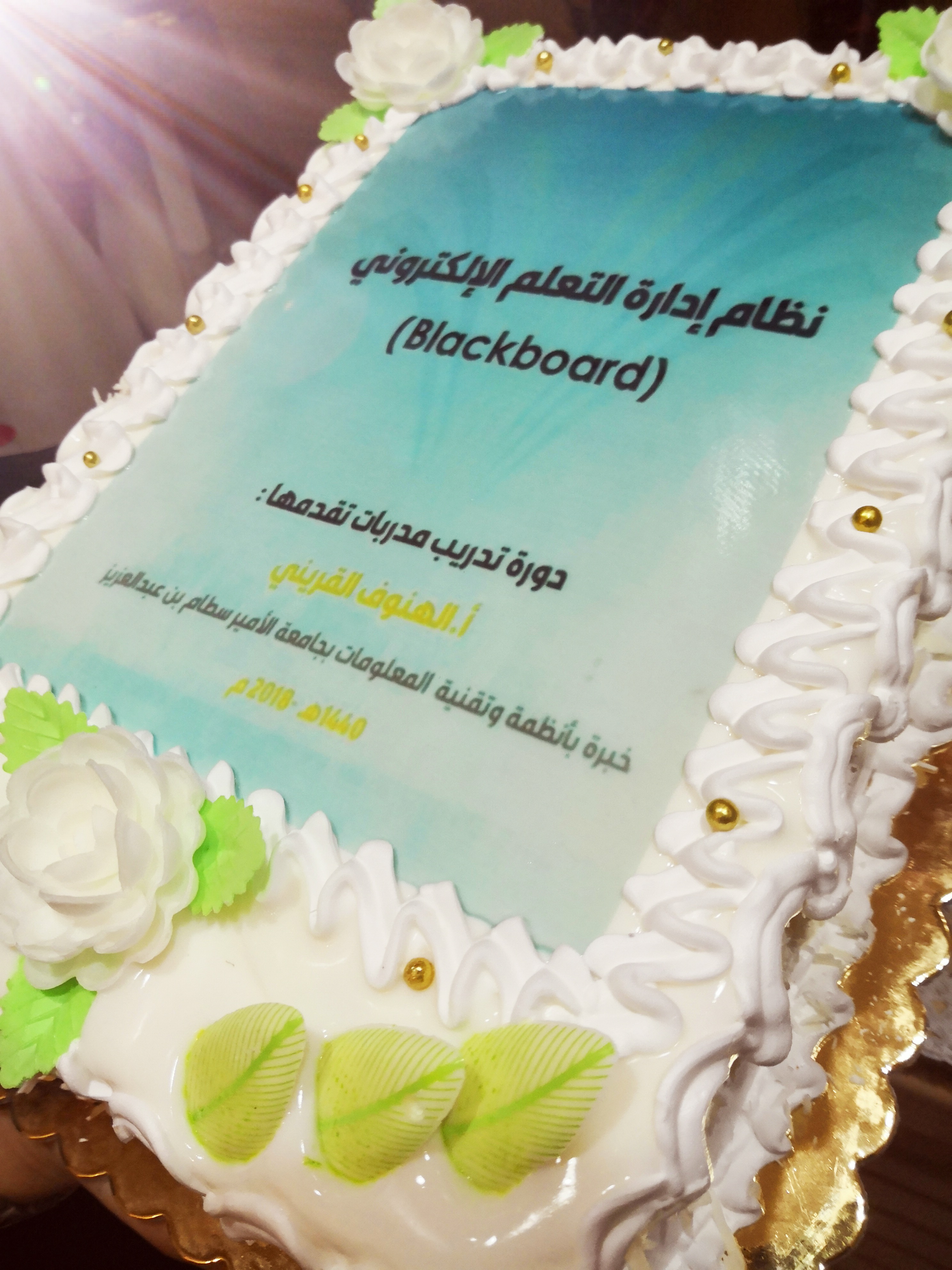 اختتمت يوم الأربعاء1440/2/1هـ الدورة التدريبية بنمط تدريب المدربين في نظام إدارة التعليم الإلكتروني (Blackboard) والتي استمرت لمدة أربع أيام، في عمادة تقنية المعلومات والتعليم عن بعد (القسم النسائي) وبالربط مع الفروع، شرحت من خلالها الأستاذة/الهنوف القريني تخصيص المقرر الدراسي وبناء المحتوى والفصول الافتراضية وإنشاء الواجبات والاختبارات والمدونات واستعرضت تجربة الطالب في نظام التعليم الإلكتروني، وفي ختام كل يوم تدريبي تم عقد ورشة عمل وتطبيق ما تم تعلمه.