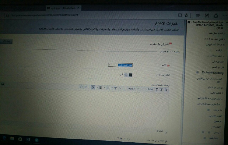 اختتمت كلية العلوم والدراسات الإنسانية بحوطة بني تميم دورتها التدريبية (تعلم نظام التعلم الإلكتروني (Blackboard )) للمدرب المعتمد الدكتور أحمد بن عبدالعزيز الشثري والتي قدمها لأعضاء هيئة التدريس لمدة ثلاثة أيام ابتداء من يوم الثلاثاء الموافق 1 /2 /1438هـ إلى يوم الخميس الموافق 3 /2 /1438هـ في قاعة الاجتماعات، والتي تهدف إلى تنمية معارف المشاركات لاستخدام طرق وتقنيات حديثة للعملية التعليمية وإكساب المعرفة لأعضاء هيئة التدريس بنظام البلاك البوورد لإثراء العملية التعليمية ببرامج حديثة تساعدهم في التواصل مع الطلبة بكفاءة عالية .هذا وقد تضمنت الدورة العديد من المحاور منها مايتعلق بأساسيات التعامل مع النظام وكيفية إنشاء المحاضرات وإعداد الاختبارات والواجبات. يُذكر أن عدد الحاضرات من عضوات هيئة التدريس قد بلغ 19 متدربة، وقد تم تزويدهن بدليل أساسيات البلاك بوورد حتى يتم التطبيق العملي الذي تم تحت إشراف منسقة نادي تقنية المعلومات أ. الهنوف القريني.