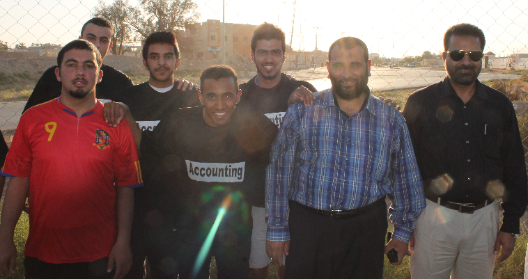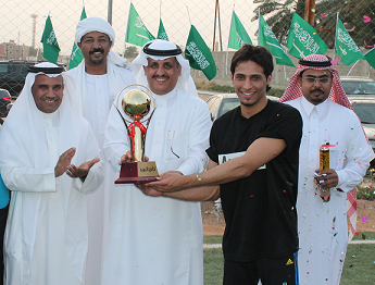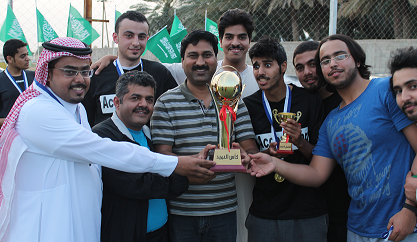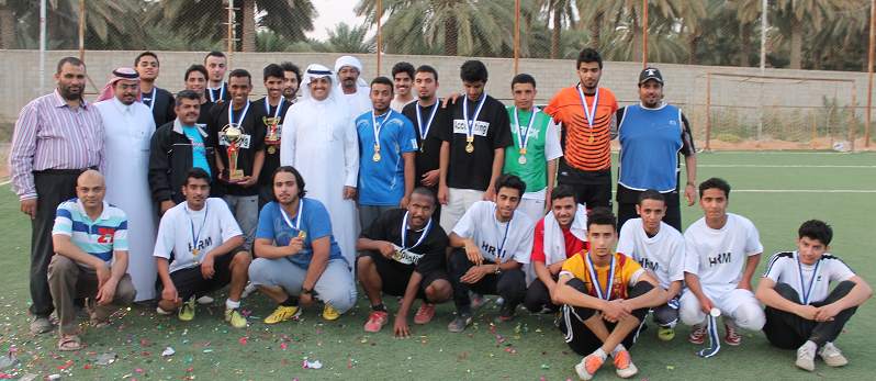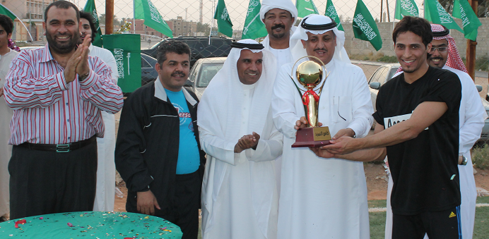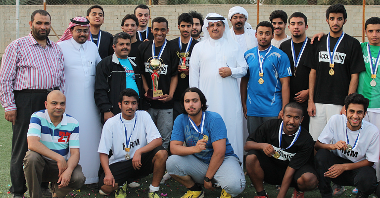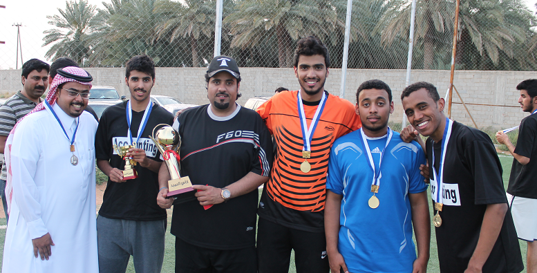 محمد هلال - كلية إدارة الأعمال بالخرج : أختتمت كلية إدارة الأعمال بالخرج فعاليات بطولة كأس العميد لكرة القدم والتي نظمتها لجنة الأنشطة الطلابية بحضور عميد الكلية د. ناصر القحطاني وعميد كلية العلوم والدراسات الإنسانية د. فرحان الجعيدي، حيث جمعت المباراة الختامية بين فريقي قسم المحاسبة وقسم إدارة الموارد البشرية وانتهت لصالح فريق قسم المحاسبة بأربعة أهداف لهدف ، وقدم الفريقان عرضا قويا ومثيرا تميز بالألفة والحماسية . ثم سلم د. ناصر القحطاني الميداليات الفضية والذهبية للفريقين وكأس البطولة لفريق المحاسبة كما ذهبت جائزة أفضل لاعب للطالب فيصل القحطاني و جائزة اللاعب المثالي للطالب محمد القحيز وأفضل حارس مرمى للطالب عبد العزيز الرفيق . حيث عكس حماس المشاركين والحضور نجاح البطولة وتحقيقها الهدف الذي أقيمت من أجله والإحساس بالترابط بين الطلاب ومنسوبي الكلية من أعضاء هيئة تدريس وموظفين .
