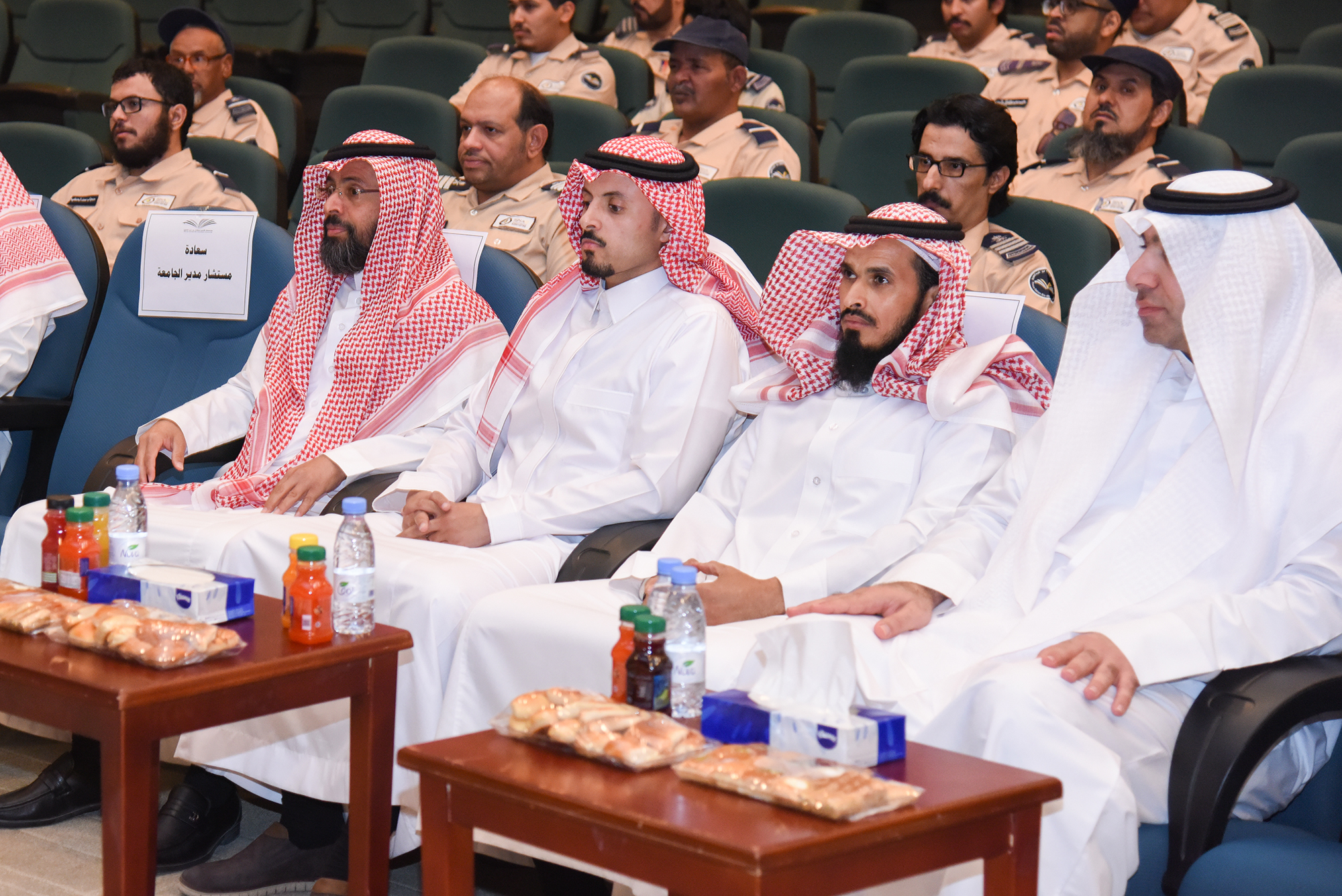 وقد أفاد مدير الأمن / سعود القحطاني بأن الدورة التي استمرت لعدة أيام هدفت إلى تنمية الإلمام بالقواعد العامة للوعي الأمني بالمنشأة لحراس الأمن مع دراسة أساليب التقاليد الأمنية و إضافة إلى الإلمام بمبادئ الاتصال و العلاقات العامة وحل المشكلات مع العاملين بالجامعة إلى جانب