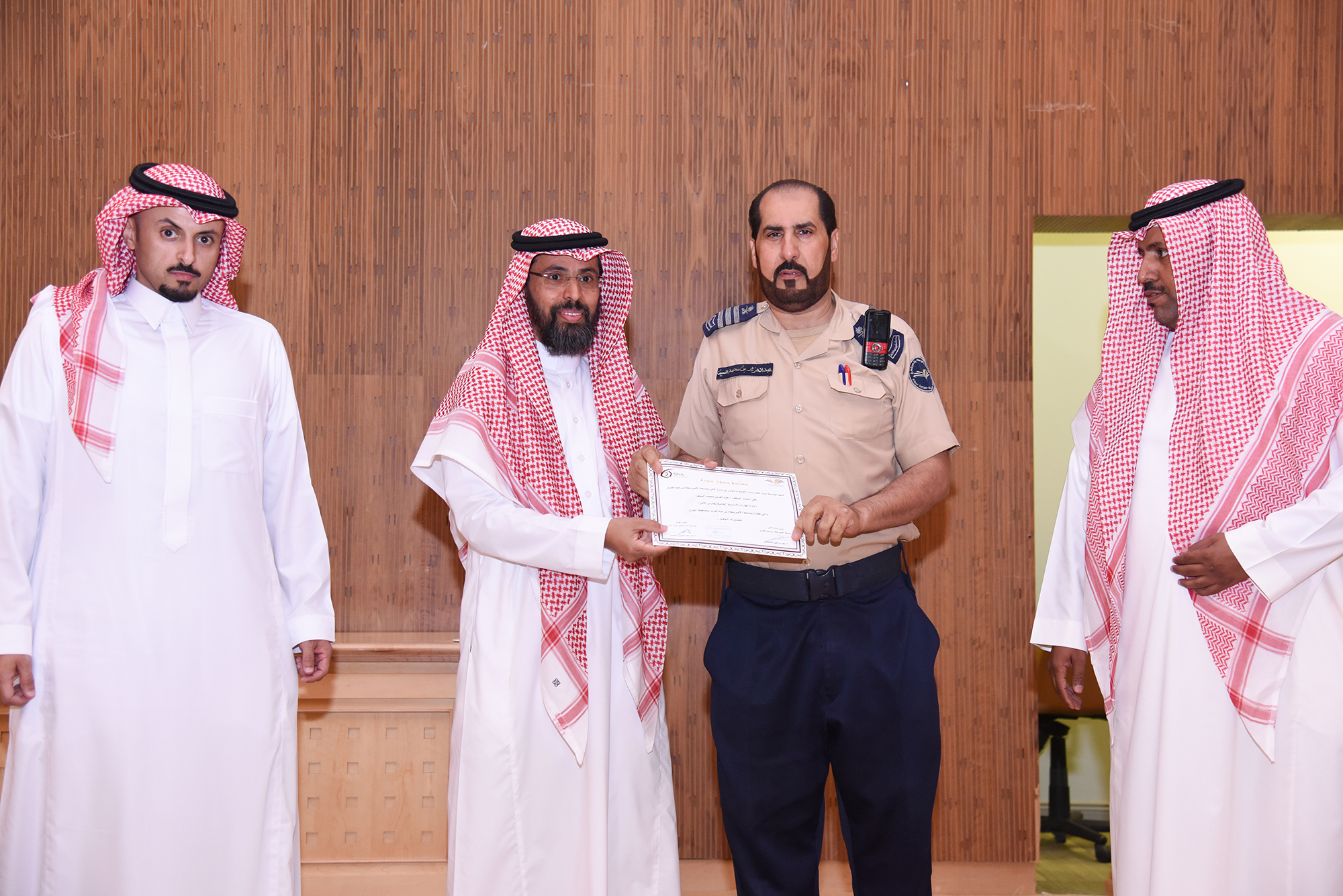 اختتمت اليوم الاربعاء الموافق 28/11/1440هـ الدورة التدريبية ( لمهارات الأساسية الخاصة بحارس الأمن ) بجامعة الأمير سطام بن عبدالعزيز – بالخرج تحت رعاية سعادة وكيل الجامعة الدكتور / عبدالله بن عبدالله الجمعة و التي نظمتها مؤسسة إسناد للحراسات الأمنية بالتعاون مع إدارة الأمن بالجامعة و استهدفت منسوبي إدارة الأمن بكليات الجامعة