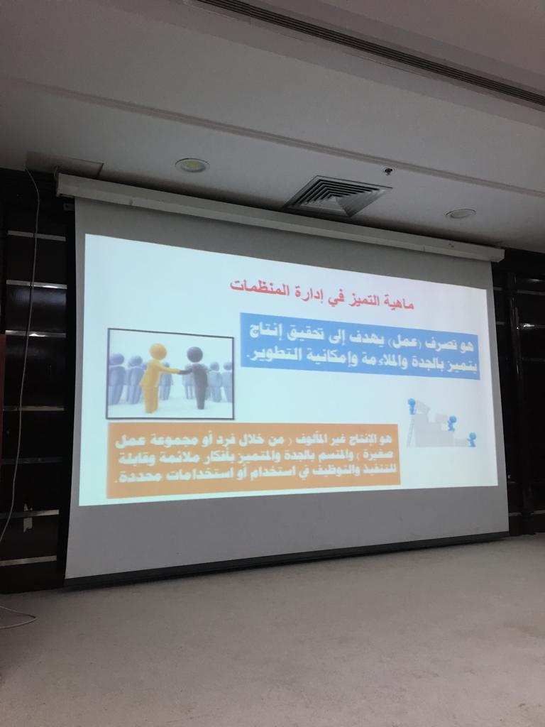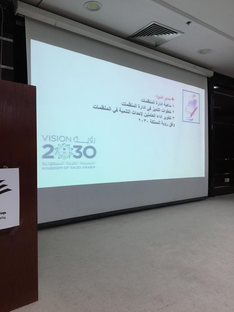وتضمنت نبذة مختصرة عن ادارة المنظمات وتعريفها والمفاهيم الاساسية للتميز في ادارة المنظمات والتخطيط الجيد لادارة المنظمة وتطوير اداء العاملين لاحداث التنمية في المنظمات وفق رؤية المملكة 2030