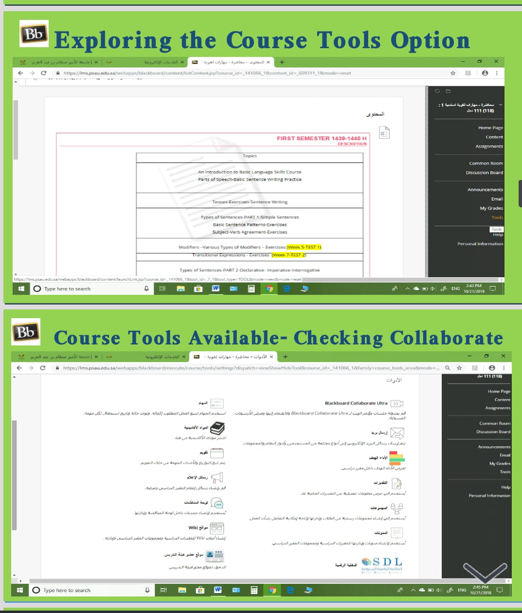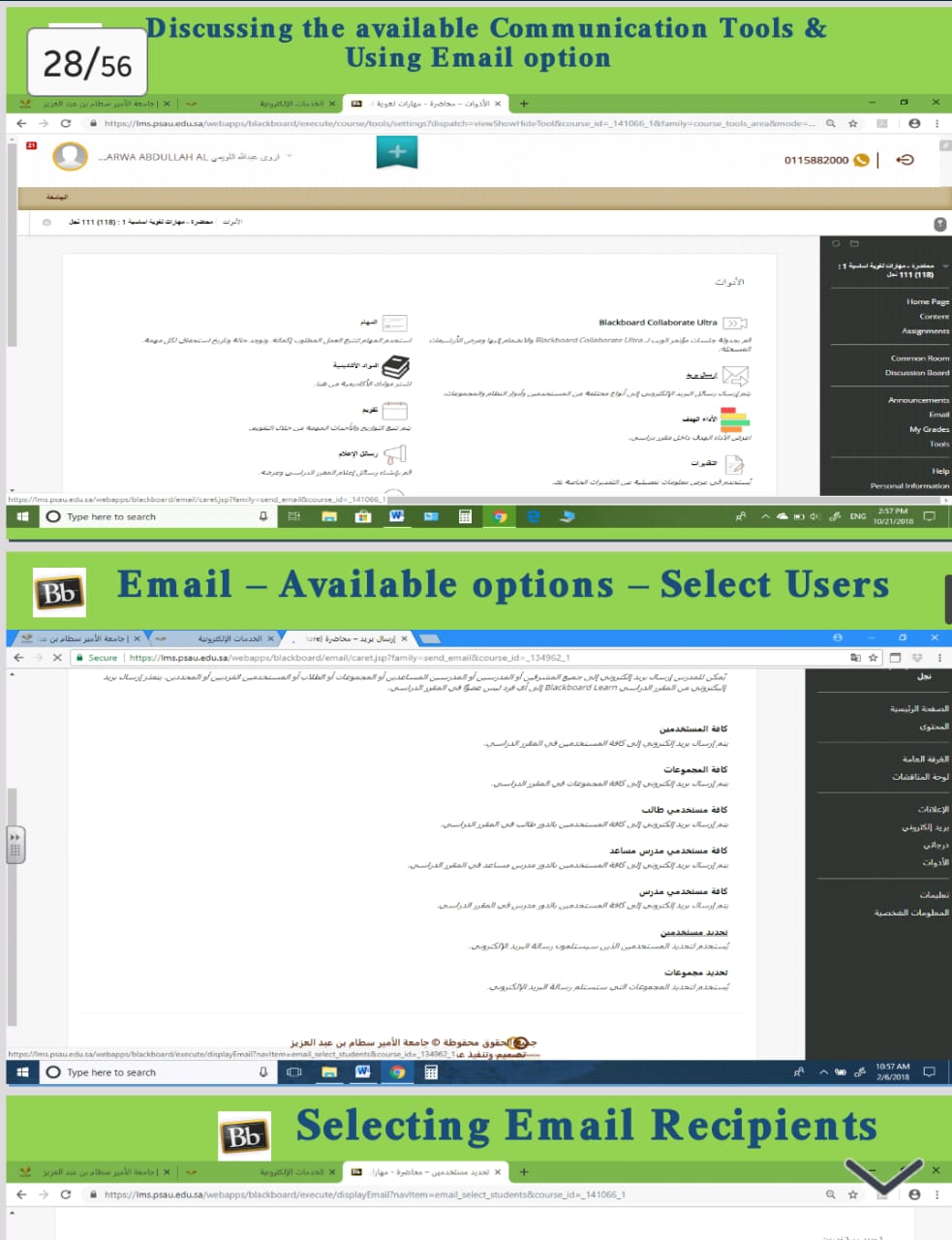 وفي نهاية الدورة عمل اختبار قصير بناءًا على ما تم تقديمه ، وحصلن الطالبات الأعلى درجات على جوائز . وتعد هذه الدورة امتداد للبرامج الناجحة للبلاك بورد في الكلية .