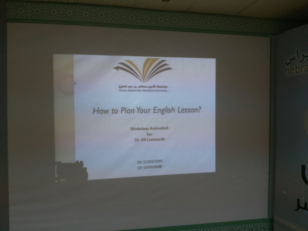 الجدير بالذكر حضر الدورة المشرف التربوي (اللغة الإنجليزية) بإدارة التعليم بوادي الدواسر أ. مرضي بن مبارك آل شريدة ومساعد العميد للتطوير والجودة بالكلية الأستاذ سليمان الزعبي ومشرف قسم اللغة الإنجليزية وآدابها بالكلية الدكتور أنيل برساد .