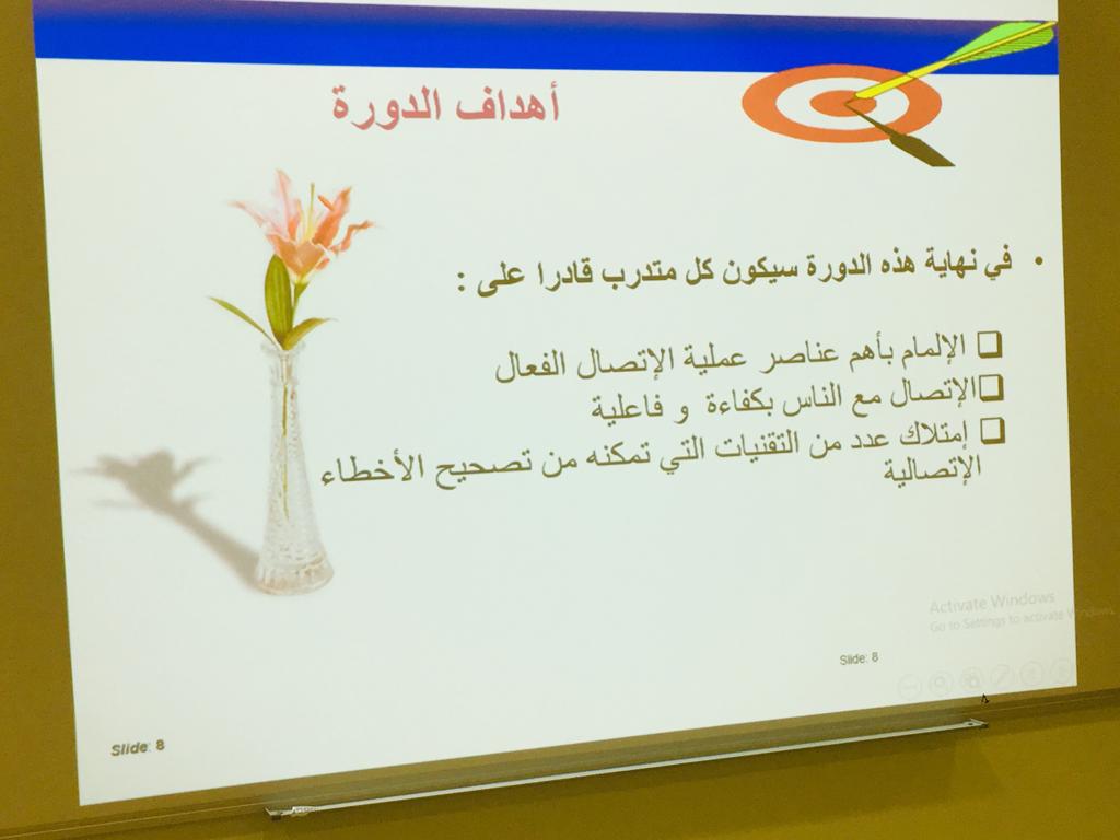 وتطرق الدكتور محمد حسن الأبيض في الدورة، للعديد من المواضيع الهامة مبينا إن من أهداف هذه الدورة تعريف المشاركين بأهمية الاتصال الفعال وكيفية التعامل مع الأزمات في موقع العمل من خلال التمتع بمهارات عالية من الاتصال ، موضحاً أهم استراتيجيات الاتصال الفعال من بينها الاتصال اللفظي وغير اللفظي والاتصال الكتابي ، وتخلل الدورة العديد من التمارين والأمثلة الشيقة التي تمكنهم من تقبل الغير وان يكونوا قادرين على فهم معوقات التواصل معهم وكيفية التأثير بغيرهم بطريقة الاتصال والتواصل الإيجابي ، وأضاف الأبيض أن الدورة تميزت بالتفاعل بين المشاركين بالدورة والمدرب .