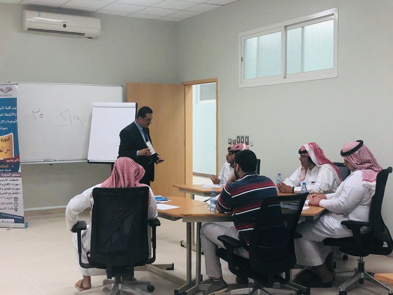 واوضح الدكتور الأبيض اثناء الدورة عن أهمية معرفة طرق التعامل والتاثيرفي الاخرين ، وأنماط الشخصيات وكيفية التعامل معها، وكيفية إقناع المستمع وتنمية قدراته الذهنية والعقلية والنفسية .